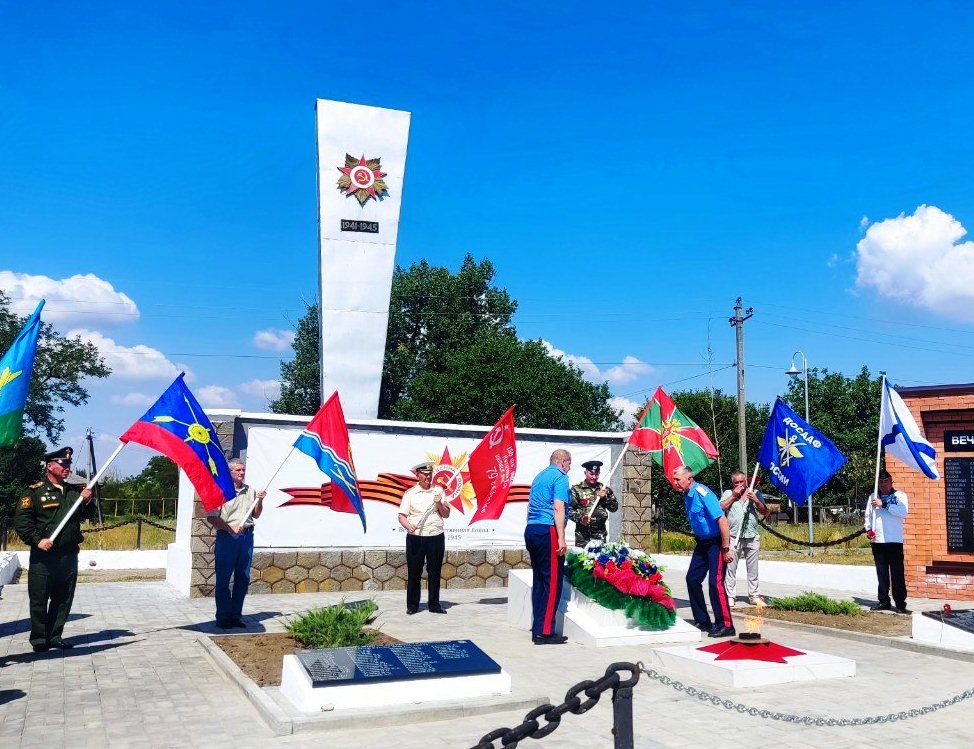 По окончанию памятных мероприятий все присутствующие возложили цветы и венки к мемориальным плитам, посвящённым погибшим воинам и к памятнику-обелиску в станице Мелиховской Усть-Донецкого района Ростовской области.