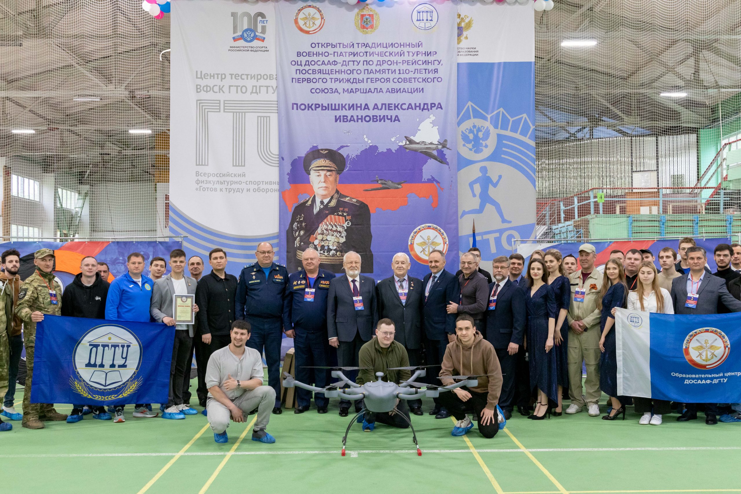 7 мая 2023 года в легкоатлетическом манеже ДГТУ состоялся турнир по дрон-рейсингу ОЦ ДОСААФ-ДГТУ, посвященный памяти 110-летия первого трижды Героя Советского Союза, маршала авиации, Покрышкина Александра Ивановича на призы Командующего