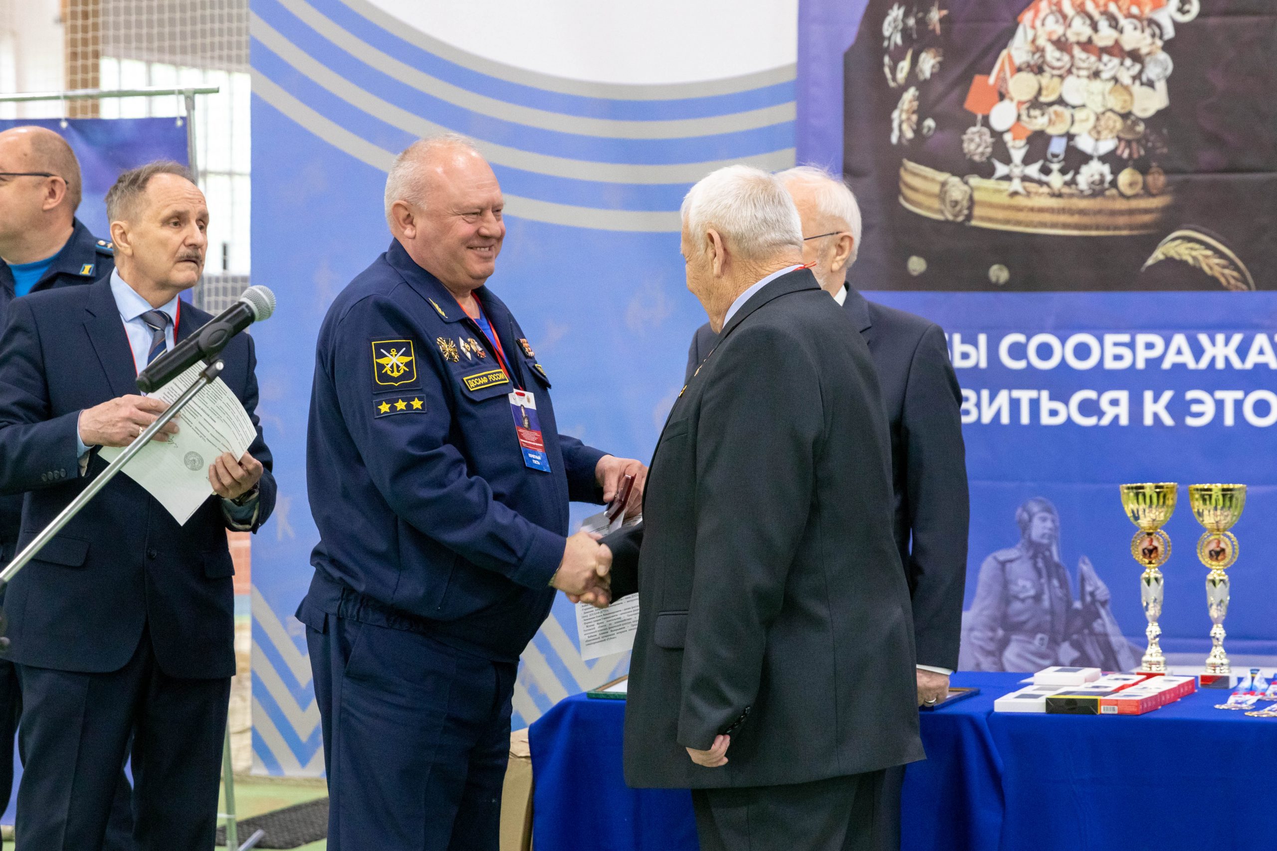 С приветственным словом от имени ректората ДГТУ выступил Могилинец Николай руководитель образовательного центра ДОСААФ- ДГТУ, который поздравил всехс праздником 9 мая, днем Победы над фашисткой Германией.Всем почетным гостям были также вручены памятные призы.