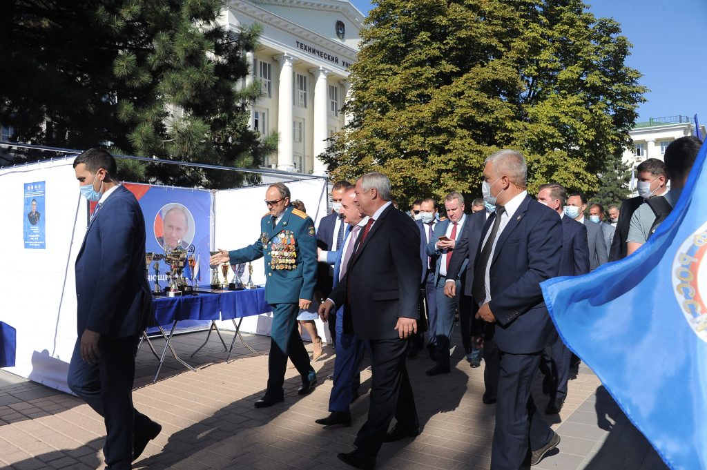Недавно 10-12 сентября 2020 года в Ростове-на-Дону проходили торжества, посвященные 90-летию опорного университета, ставшего авторитетным образовательным, научно-исследовательским центром Юга России, одним из наиболее востребованных вузов страны. Ректор университета Бесарион Чохоевич Месхи и руководитель «Образовательного центра ДОСААФ-ДГТУ» Николай Николаевич Могилинец представили главе региона Голубеву Василию Юрьевичу и почетным гостям выставку достижений спортивных клубов Образовательного центра «ДОСААФ-ДГТУ». Активисты центра( члены ДОСААФ России) развернули на ней 15 модулей, заполненных оборудованием, техникой , спортивными достижениями( наградами и призами) и наглядной агитацией. Губернатор Ростовской области дал высокую оценку выставке и выразил свое мнение о необходимости дальнейшего развития военно-патриотического, духовно-нравственного воспитания молодежи и военно-прикладных, технических и авиационных видов спорта.
