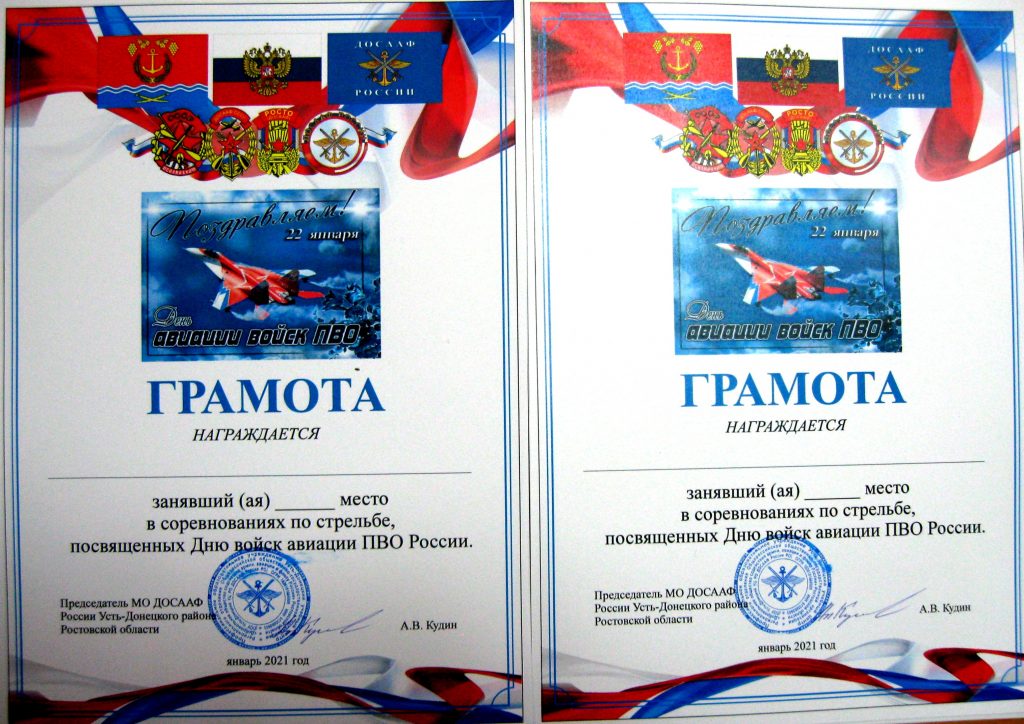 В рамках Плана основных мероприятий Регионального отделения ДОСААФ России Ростовской области 16 и 23 января 2021 года в стрелковом тире Усть-Донецкого учебного центра ДОСААФ России прошли стрелковые соревнования, посвященные годовщине со дня образования ОСАВМАХИМ-РОСТО-ДОСААФ, а так же Дню войск авиации ПВО России.