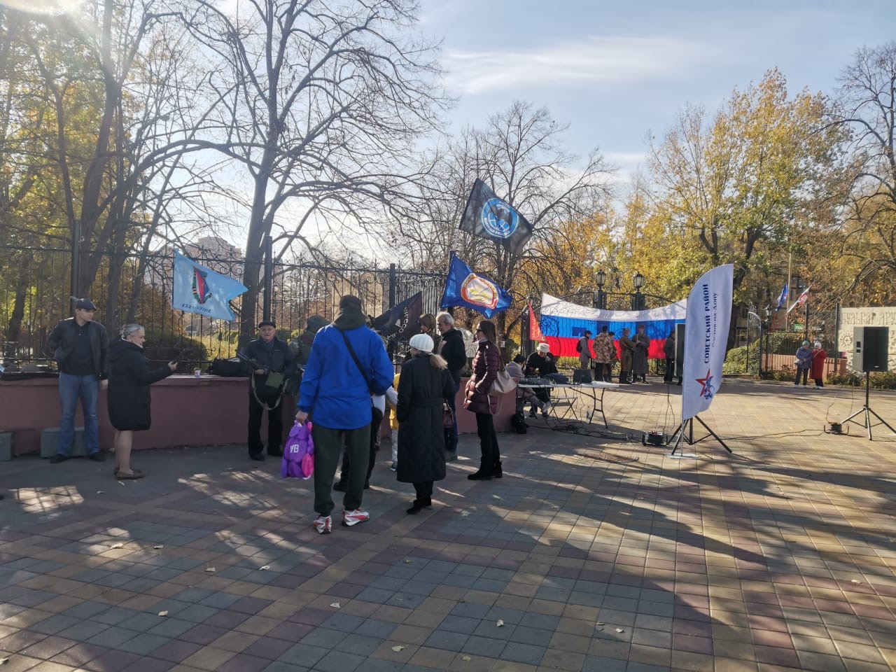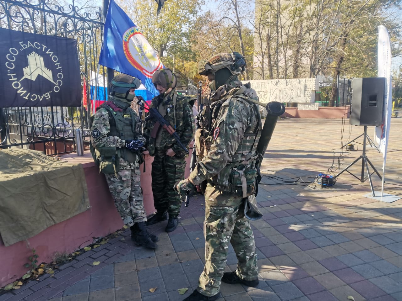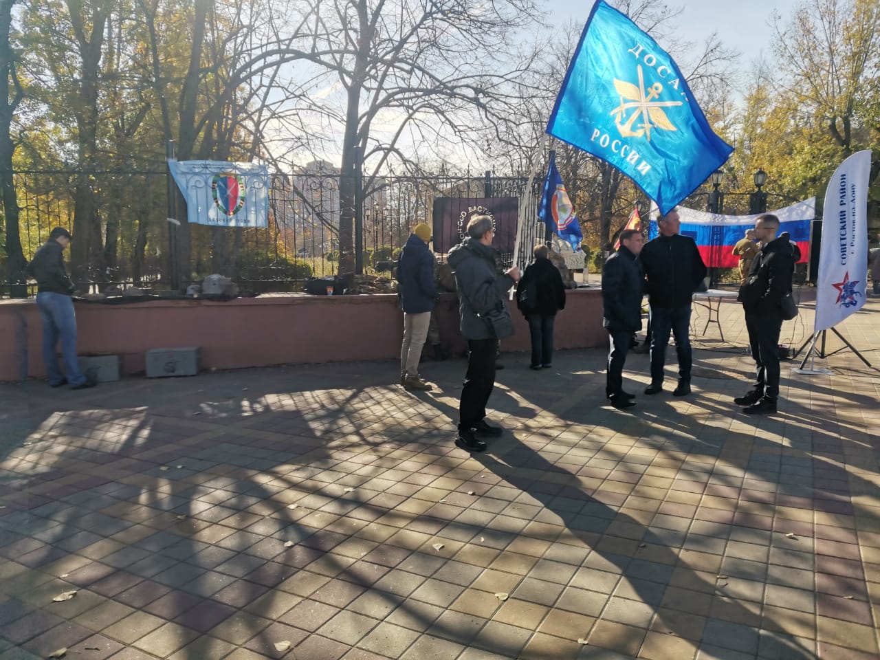 4 ноября 2025года, в период с 11.00 до 12.30 в Советском районе г. Ростова-на-Дону отметили «День народного единства» и «День военной разведки» (5.11.25). Данное мероприятие объединило ветеранов различных войн, участников СВО, волонтеров, представителей общественных организаций и всех неравнодушных граждан. Патриотическую акцию посетило более 200 человек, в том числе с детьми, она стала настоящим праздником единства и патриотизма. Собравшиеся ветераны, участники боевых действий, СВО, возложили цветы к памятнику, минутой молчания почтили память героев локальных войн, отдавших свою жизнь на полях сражений, выполняя боевой приказ, защищая интересы Родины. Гости мероприятия смогли сделать памятные фото, в том числе на фоне флага РФ, с реконструкторами «Донского рубежа» в форме Великой Отечественной войны, организации «Бастион» в форме бойцов СВО, осмотреть выставки, посвященные Великой Отечественной войне, СВО, подготовленные поисковиками первичных отделений РО ДОСААФ России РО: «Отечество» и «Бастион, Особый интерес вызвала выставка организации «Бастион», посвященная Специальной военной операции, где были представлены образцы вооружения и трофейная оборудование. Присутствующие специалисты-члены первичного отделения ДОСААФ подробно рассказывали о представленном оружии, что позволило гостям получить ценную информацию. Праздничное настроение на площадке создавали патриотические песни, флаги.