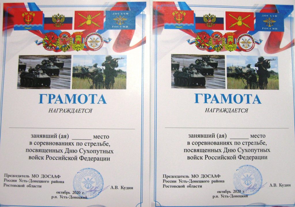 19 и 26 сентября 2020 года в стрелковом тире местного отделения ДОСААФ России Усть-Донецкого района прошли соревнования по стрельбе, посвященные Дню Сухопутных войск Российской Федерации.