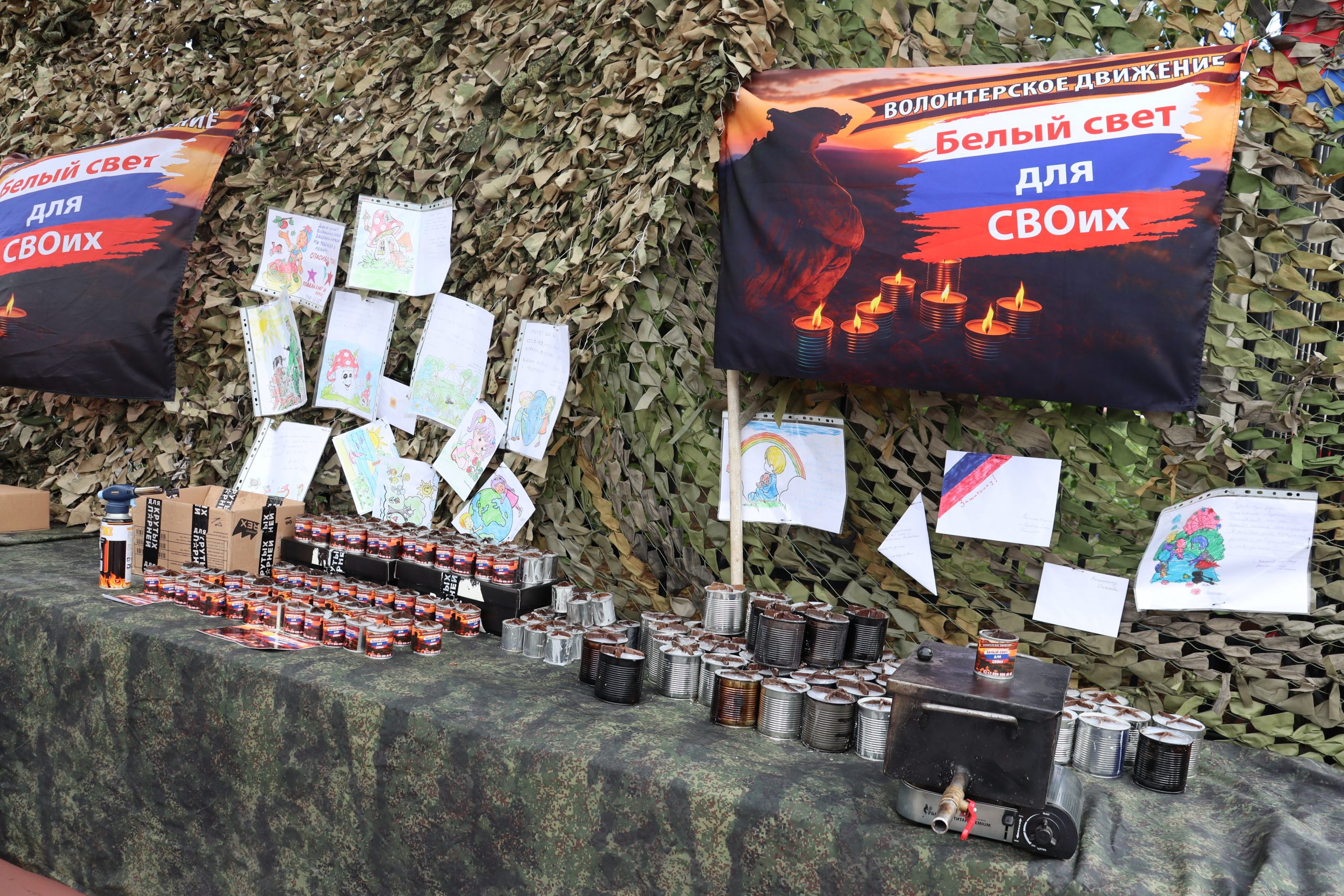 Важной частью фестиваля стал сбор гуманитарной помощи для участников СВО. Было собрано значительное количество продуктов питания и медикаментов, которые будут направлены в зону проведения СВО. Праздничное настроение создавали работающая на площадке настоящая малая полевая кухня, звучали патриотические песни.