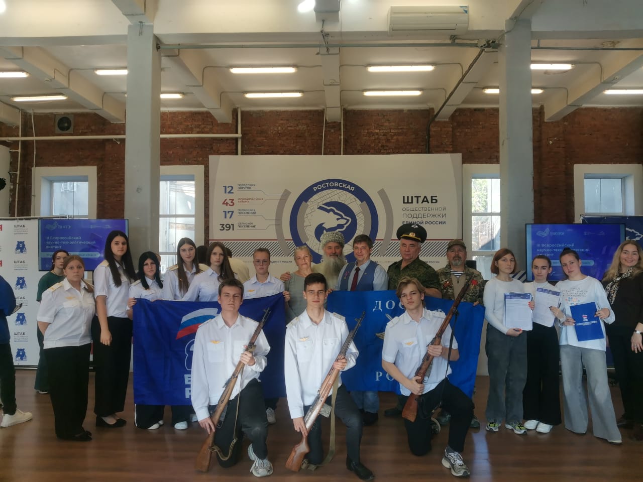 30 октября 2025 года, на площадке Штаба общественной поддержки Партии «Единая Россия» (ДК «Правда», г. Ростов-на-Дону, ул. Горького 151) прошёл III Всероссийский научно-технологический диктант в рамках XII Международного форума технологического развития «Технопром-2025». Соорганизаторами мероприятия выступили: Региональное отделение ДОСААФ России Ростовской области, поисковое объединение «Миус фронт». Собрались учащиеся образовательных учреждений ДГТУ, РГУПС, все, кто любит науку, историю и технологии. Тема диктанта этого года — «Технологии победы». Участникам предстояло вспомнить и узнать, какие инновации и научные открытия помогли стране одержать Победу в годы Великой Отечественной войны. От медицины и связи до инженерных решений, разведки и производства — именно эти технологии стали тем самым фундаментом, на котором строился послевоенный научно-технический прогресс. На мероприятии присутствовали, выступили почетные гости: