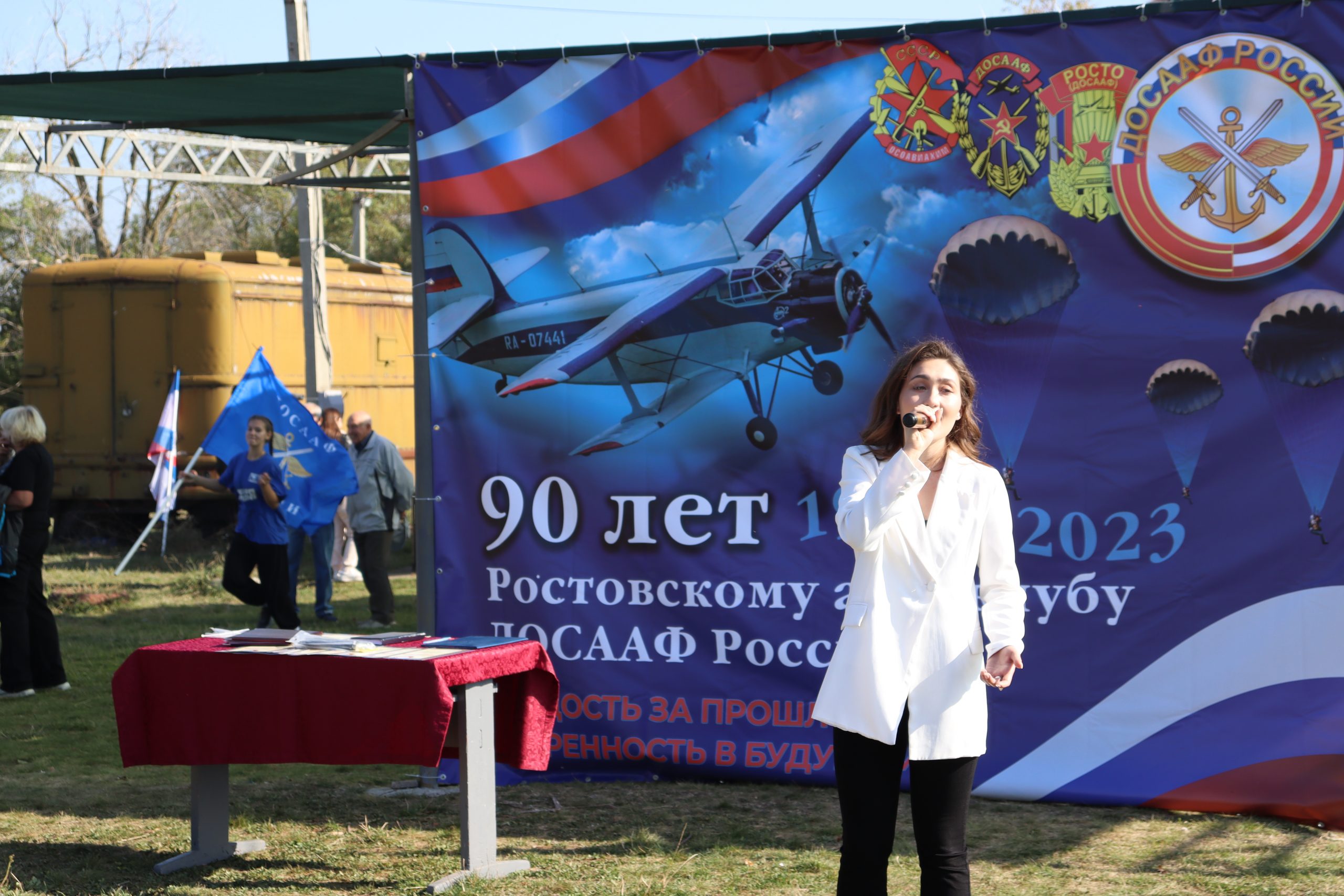 Мероприятие, посвященное 90 — летию АНО ДПО «Ростовский АСК ДОСААФ России, началось в 10.00, 14 октября 2023 года. Под исполнение гимна России торжественно были подняты флаги РФ и ДОСААФ России в составе почетной команды юных парашютистов и ветерана ДОСААФ — Бурова Владимира Константиновича, председателя федерации Парашютного спорта с 1970 по 1012 г.г., мастера спорта СССР по парашютному спорту, инструктора парашютно-десантной подготовки авиационно-спортивного клуба.