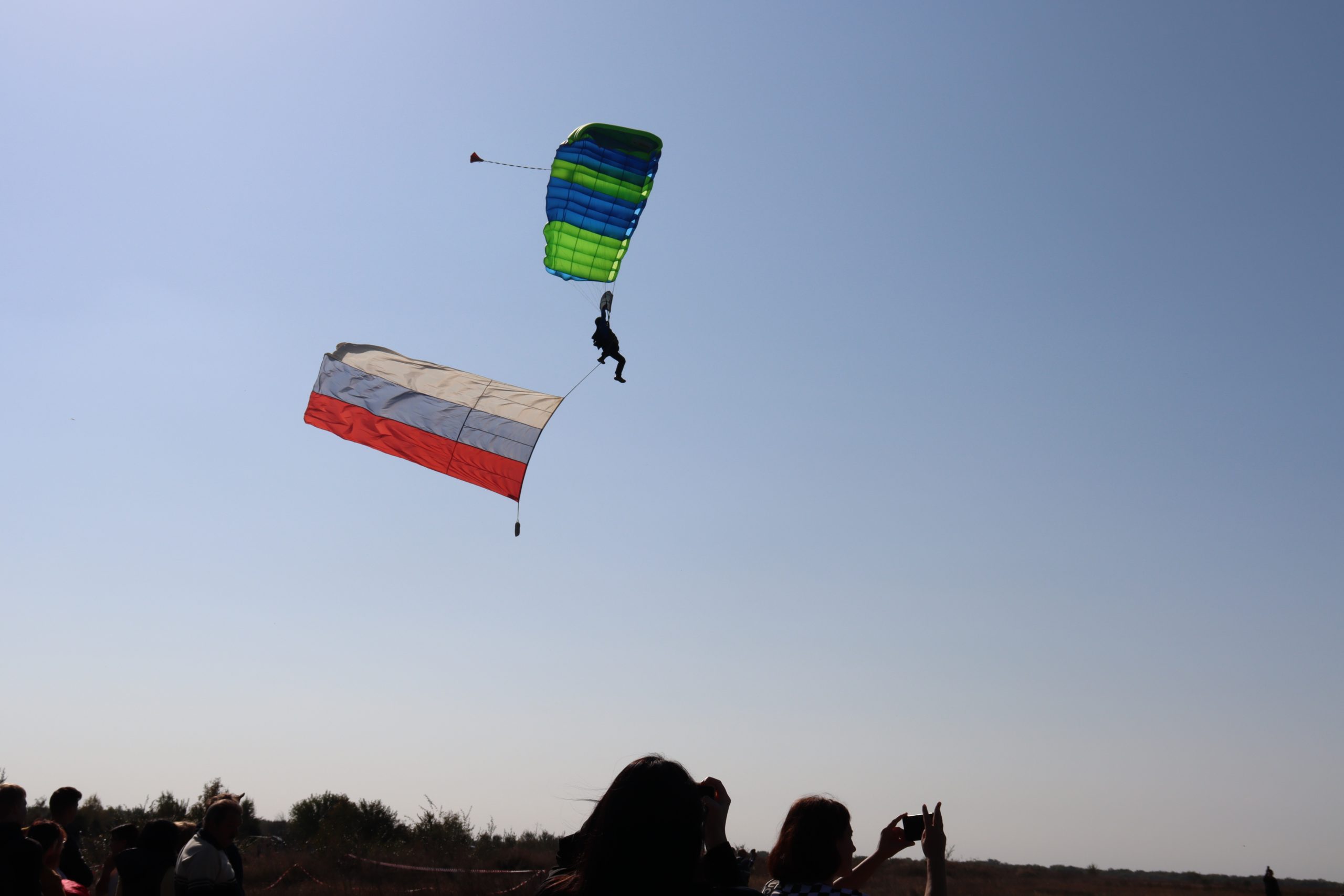 Продолжили программу яркие выступления парашютистов-спортсменов, с флагами России, Ростовской области, ВВС РФ и ДОСААФ России, а также авиамодельные пилотажные группы на высокоманёвренных моделях самолётов и вертолётов (точных копиях существующих типов летательных аппаратов).