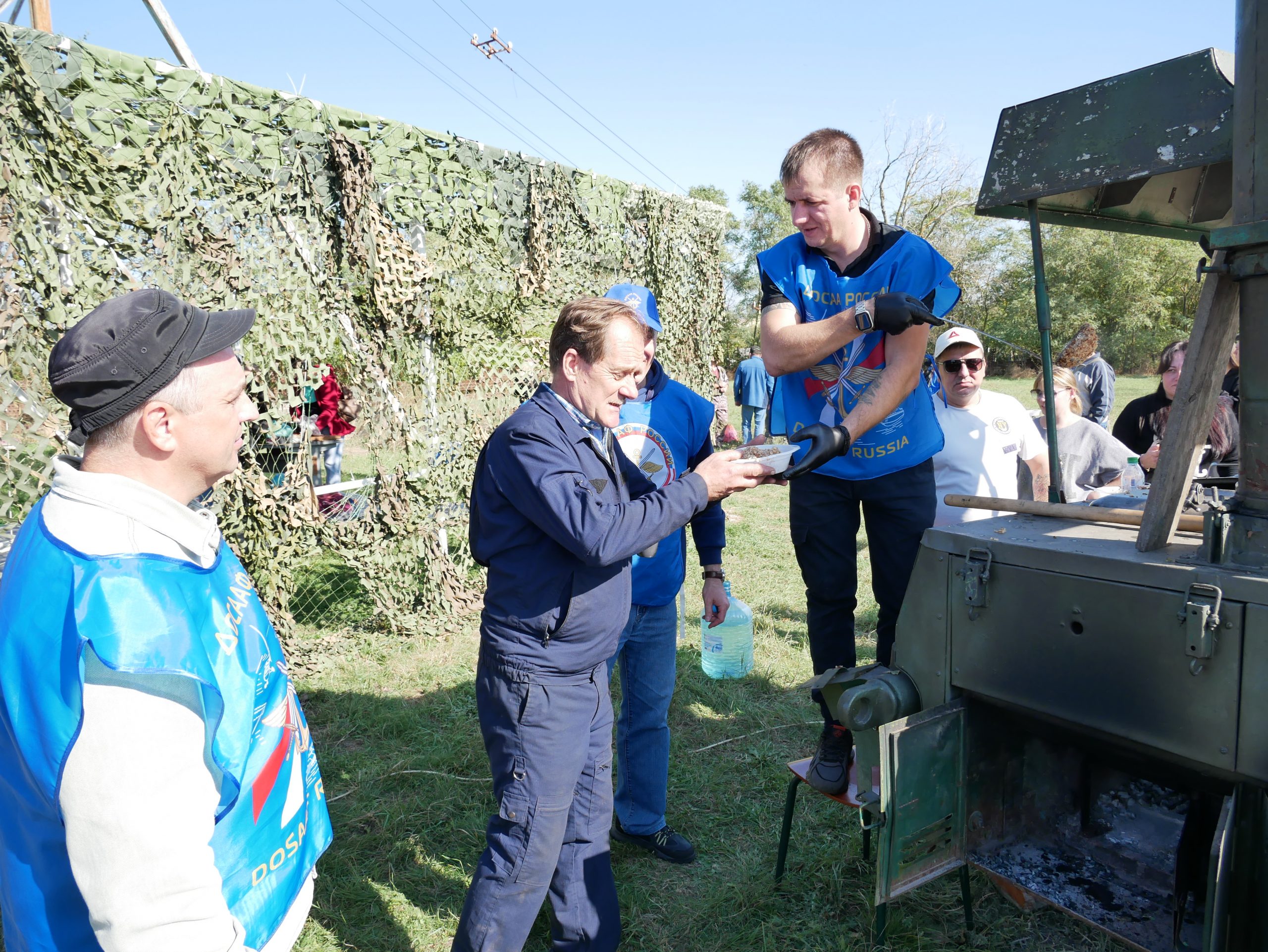 Также функционировала армейская полевая кухня, где все желающие могли отведать солдатской каши и взбодриться горячим чаем.