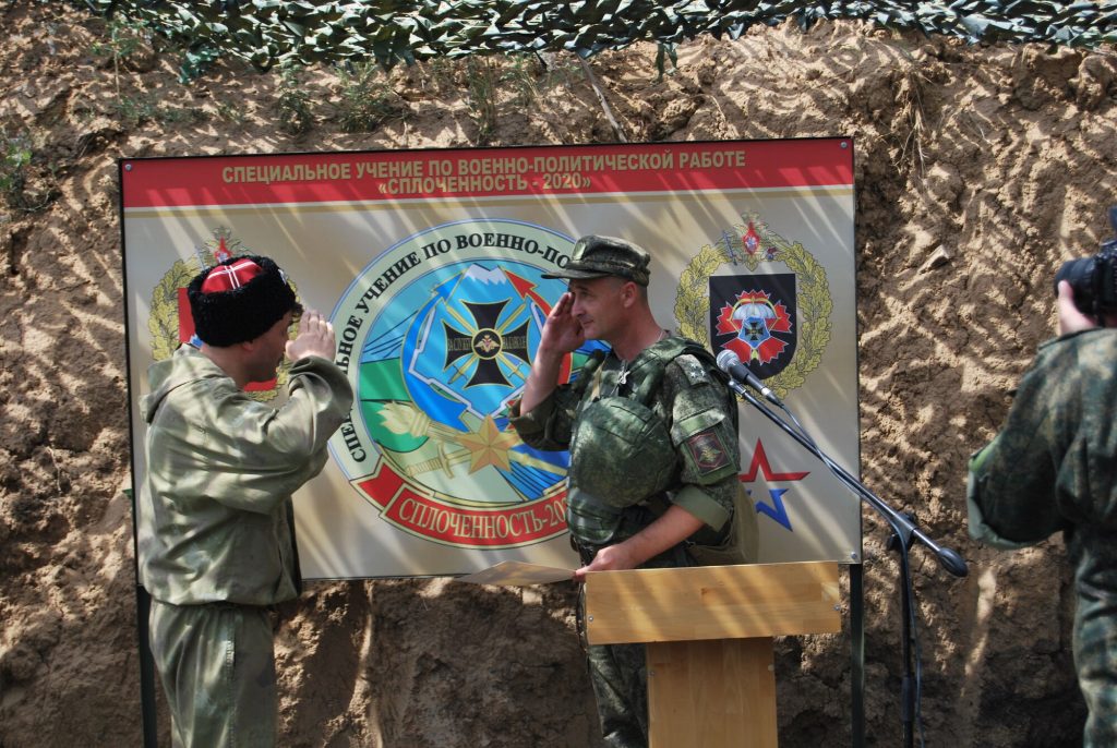 Военнослужащие в составе войск Южного военного округа находятся на учебно-тренировочных полигонах с отработкой поставленных командованием задач. Представителями духовно-патриотического центра совместно с казачьей-юнармейской разведгруппой «Георгиевцы» воспитанников приходской воскресной школы храма Иоанна Воина для солдат и командиров, прибывших после выполнения учебных задач, были организованы культурно-досуговые занятия по духовно-нравственному, военно-патриотическому, историко-культурному воспитанию военнослужащих. Это новая форма работы была предложена военно-политическим управлением Южного военного округа совестно с Региональным отделением ДОСААФ России Ростовской области.
