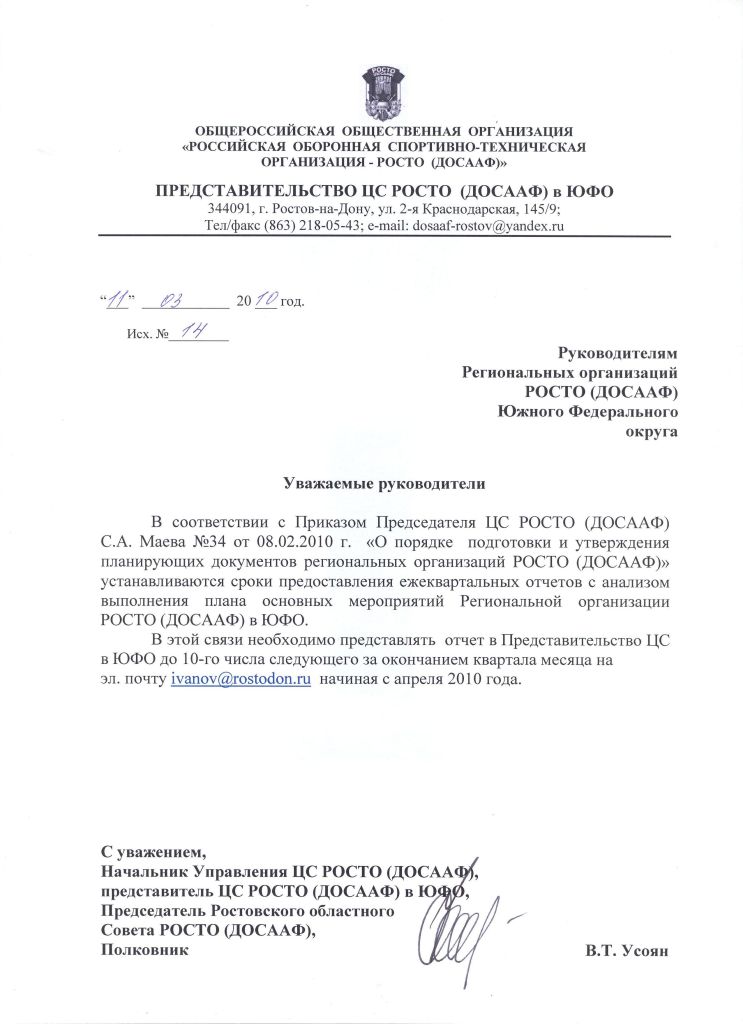 Приказ о порядке подготовки и утверждения планирующих документов региональных организаций ДОСААФ России № 14 от 11.03.2010г.