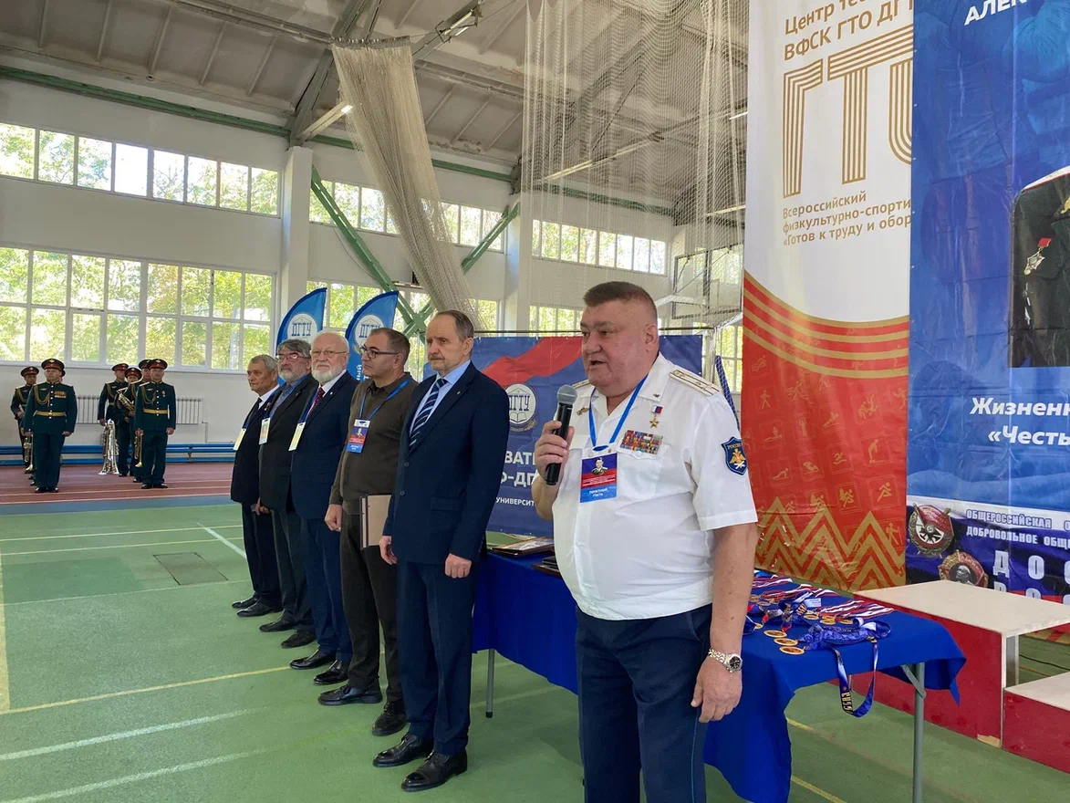 Герой России, генерал-майор Александр Красников поздравил активистов с открытием соревнований и поблагодарил руководство образовательного центра ДОСААФ-ДГТУ за качественную подготовку и проведение мероприятия, пожелал спортсменам честной борьбы и удачи на соревновательных рубежах.