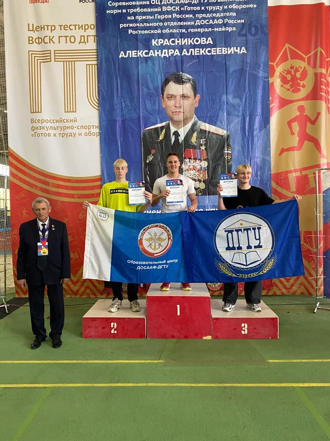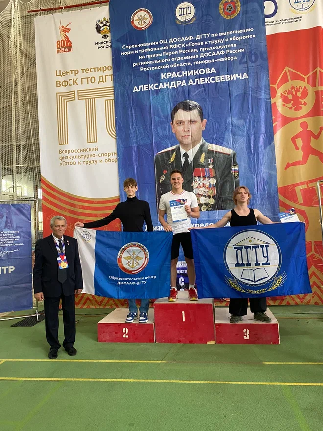4 октября в легкоатлетическом манеже ДГТУ состоялись соревнования ОЦ ДОСААФ-ДГТУ по выполнению норм и требований Всероссийского физкультурно-спортивного комплекса «Готов к труду и обороне» на призы Героя России, генерал-майора А.А. Красникова. Турнир проходил под девизом: «Жизненное кредо каждого: честь, совесть, слава!»