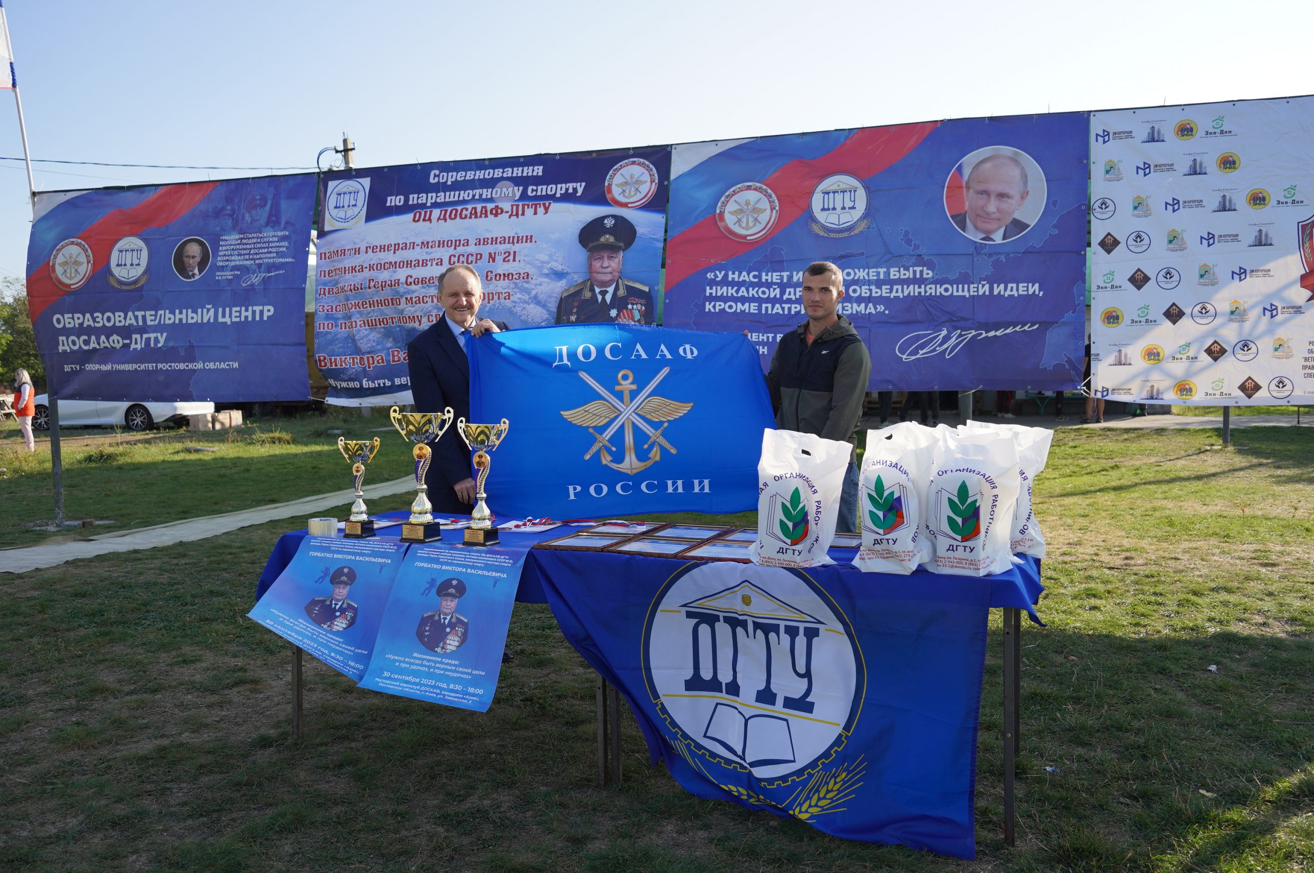 30 сентября 2023 года на аэродроме Азов состоялись соревнования ОЦ ДОСААФ –ДГТУ по парашютному спорту, памяти генерал-майора авиации, летчика-космонавта СССР №21, дважды Героя Советского Союза, заслуженного мастера спорта по парашютному спорту Виктора Васильевича Горбатко. В них приняли участие спортсмены из городов Ростов-на-Дону, Таганрог, Азов, Шахты, Волгодонск, Каменск-Шахтинск, Белая Калитва, ст.Тацинская, ЛНР и ДНР – всего 95 человек, в том числе студенты и сотрудники, члены ДОСААФ-ДГТУ.
