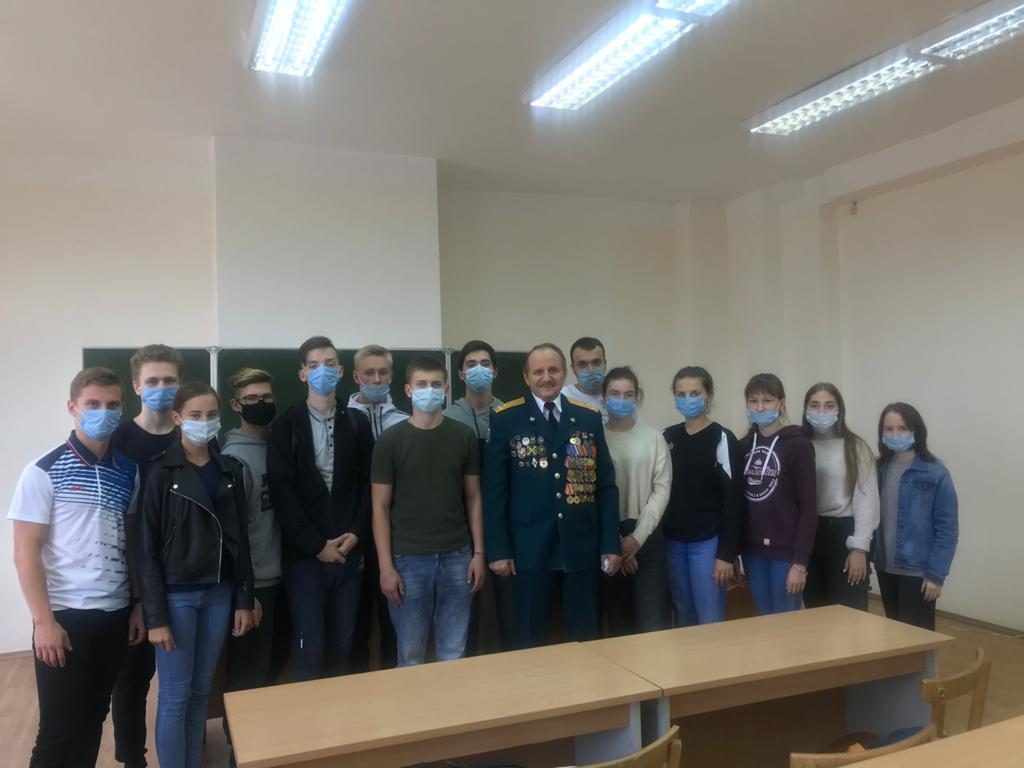 Ветеран боевых действий, полковник запаса, Николай Николаевич Могилинец рассказал студентам о героических подвигах полководцев Второй мировой войны, таких как маршал Советского Союза, четырежды Герой Советского Союза, кавалер двух орденов «Победа», шести орденов Ленина, множества других советских и иностранных орденов и медалей Георгий Константинович Жуков,дважды Герой Советского Союза. Кавалер Ордена «Победа», единственный в истории СССР маршал двух стран: Маршал Советского Союза и маршал Польши Константин Константинович Рокоссовский и Маршал Советского Союза, дважды Герой Советского Союза, кавалер ордена «Победа» Иван Степанович Конев и других великих военачальниках. Также Николай Николаевич посвятил урок первому трижды Герою Советского Союза, маршалу авиации СССР Александру Ивановичу Покрышкину. Его кредо-«Высота, скорость, манёвр, атака». Имя Александра Ивановича Покрышкина наводило страх на немецких лётчиков. «Внимание, внимание! В небе Покрышкин!» — так предупреждали друг друга по радиостанции фашистские лётчики. И боялись не зря — 59 вражеских самолётов лично сбил лётчик герой Покрышкин. Интересный факт- 1955-1956 г.г. Александр Иванович проживал в г. Ростов-на-Дону. В память об этом есть мемориальная доска на ул. Станиславского, 89а.