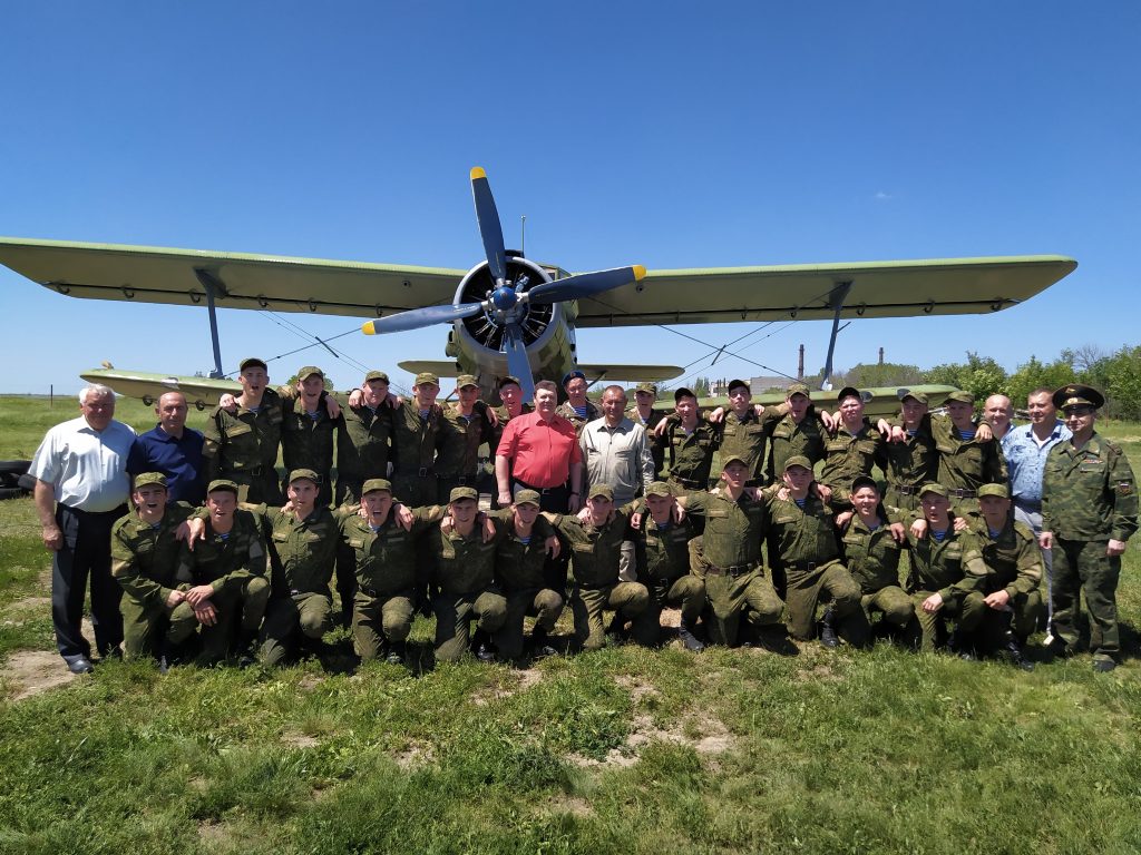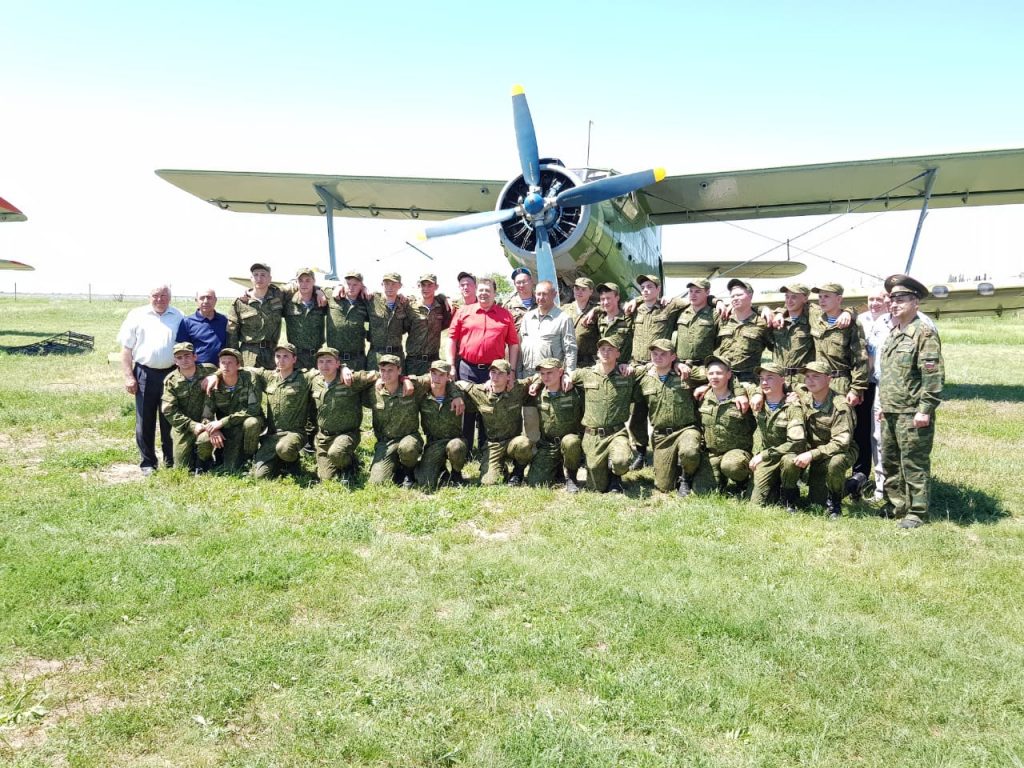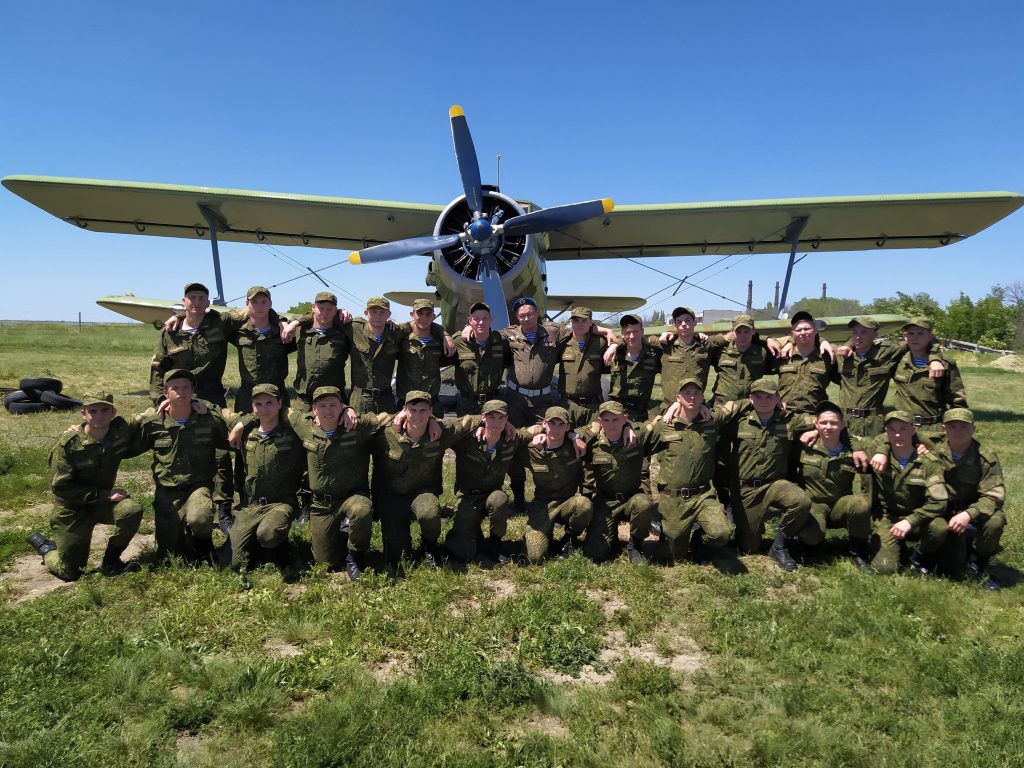 После торжественного выпуска состоялось совместное фотографирование с наставниками перед самолетом, который поднял курсантов в небо и с борта, которого они совершили свой первый в жизни прыжок с парашютом.