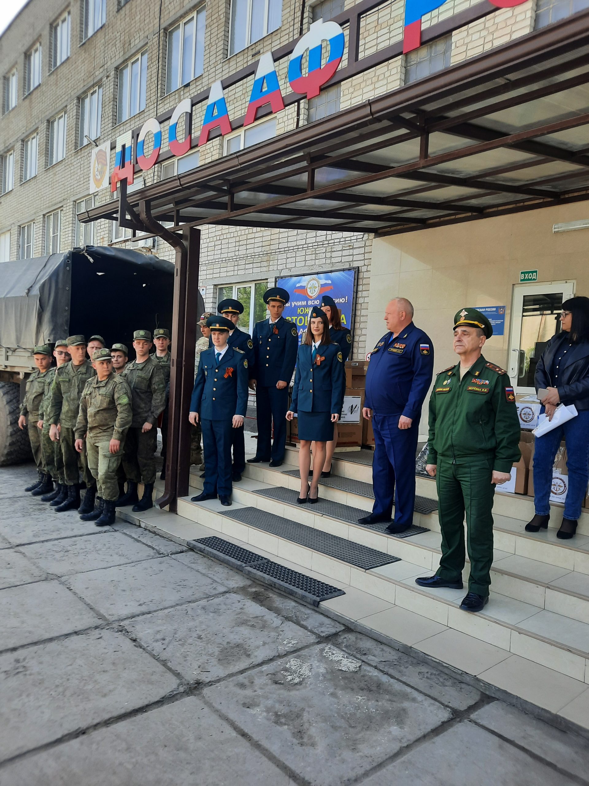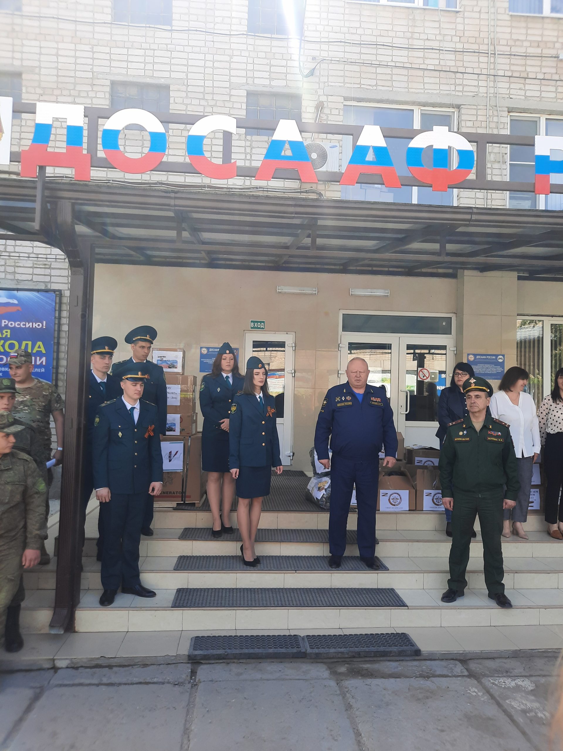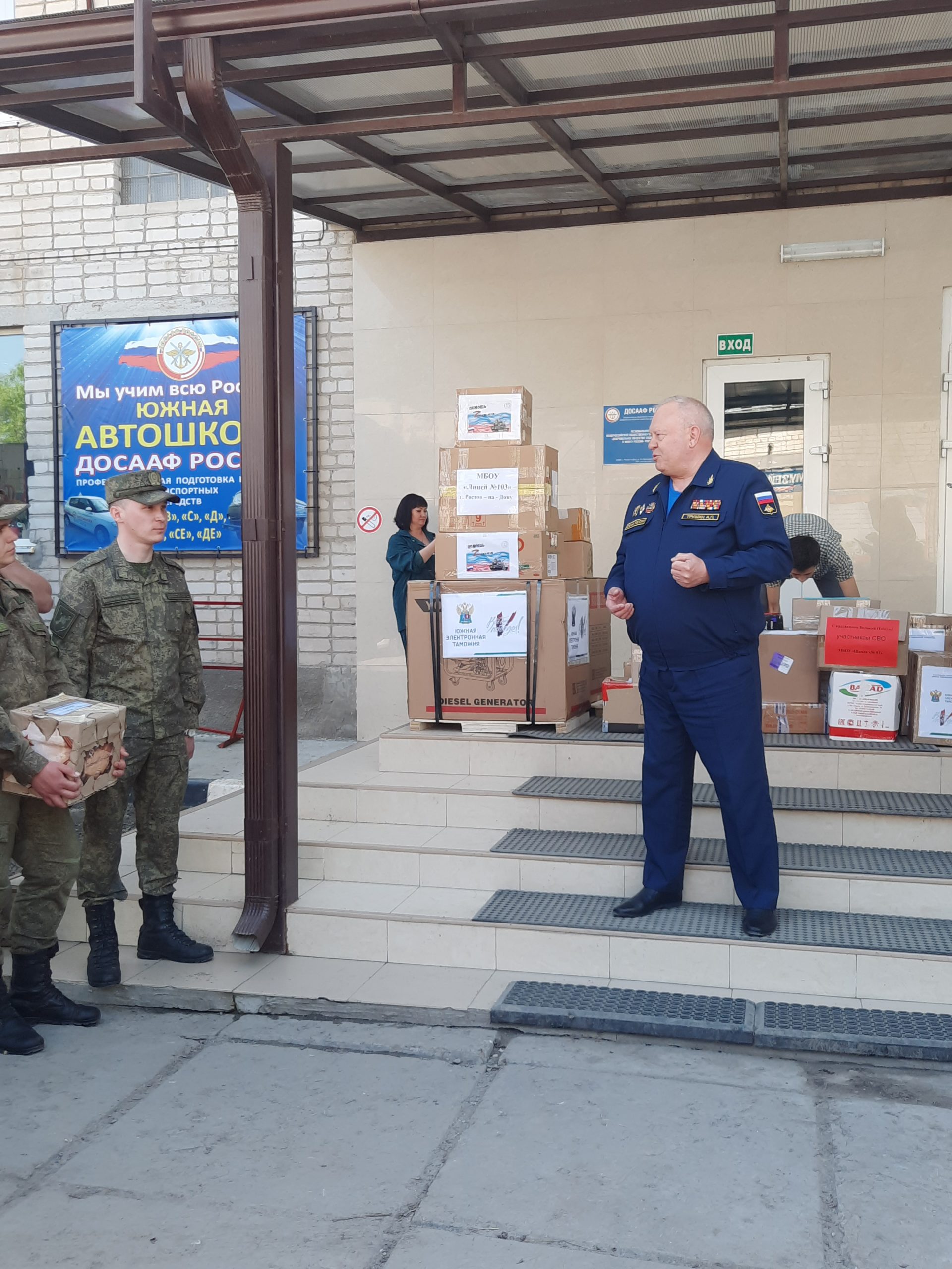 Акция передачи гуманитарной помощи (военно-технического имущества) представителям 150 мсд ЮВО и ЧФ состоялась в расположении РО ДОСААФ России РО, на 2-й Краснодарской, 145/11, 5 мая 2023 года. Мероприятие посвящено Дню Победы, а бойцы 150 мсд в 1945 году водрузили знамя Победы над рейхстагом, что очень символично и сейчас, в период борьбы с неонацизмом. Помимо ДОСААФ в акции приняли участие и другие партнеры патриотической направленности. Перед началом акта передачи помощи состоялся митинг, который открыл заместитель Председателя РО ДОСААФ России РО по военно-патриотической работе Верёвка Виктор Викторович. Затем Председатель РО ДОСААФ России Ростовской области Трушин Анатолий Петрович обратился ко всем участникам мероприятия, поблагодарил всех за оказание помощи, а представителям воинских частей пожелал успехов в их боевой работе. Учащиеся школ подготовили свои подарки, а самые главные из них – письма нашим бойцам на передовую и сердечные поздравления с пожеланиями Победы. Кроме того, они подготовили небольшой концерт, читали стихи о войне и спели песни для бойцов. Их наставники выступили с пожеланиями нашим военнослужащим. Это уже не первая акция, проводимая РО ДОСААФ России РО, с начала проведения специальной военной операции. За этот период уже собрано и закуплено средств на сумму более 7 млн рублей, отправлено в войска более 400 тонн различных грузов. В первую очередь отправляются грузы по заявке непосредственно от командования воинских частей, и именно то, что необходимо для выполнения задач в боевых условиях. Каждую такую акцию наши воины воспринимают с большой благодарностью. Не забываем мы и про помощь гражданам освобожденных территорий, оказываем им всемерную поддержку в непростых условиях, отправляем гуманитарные грузы для них.