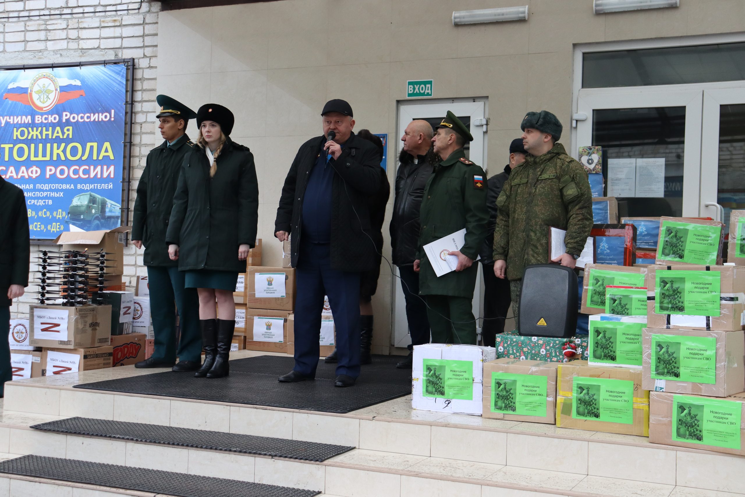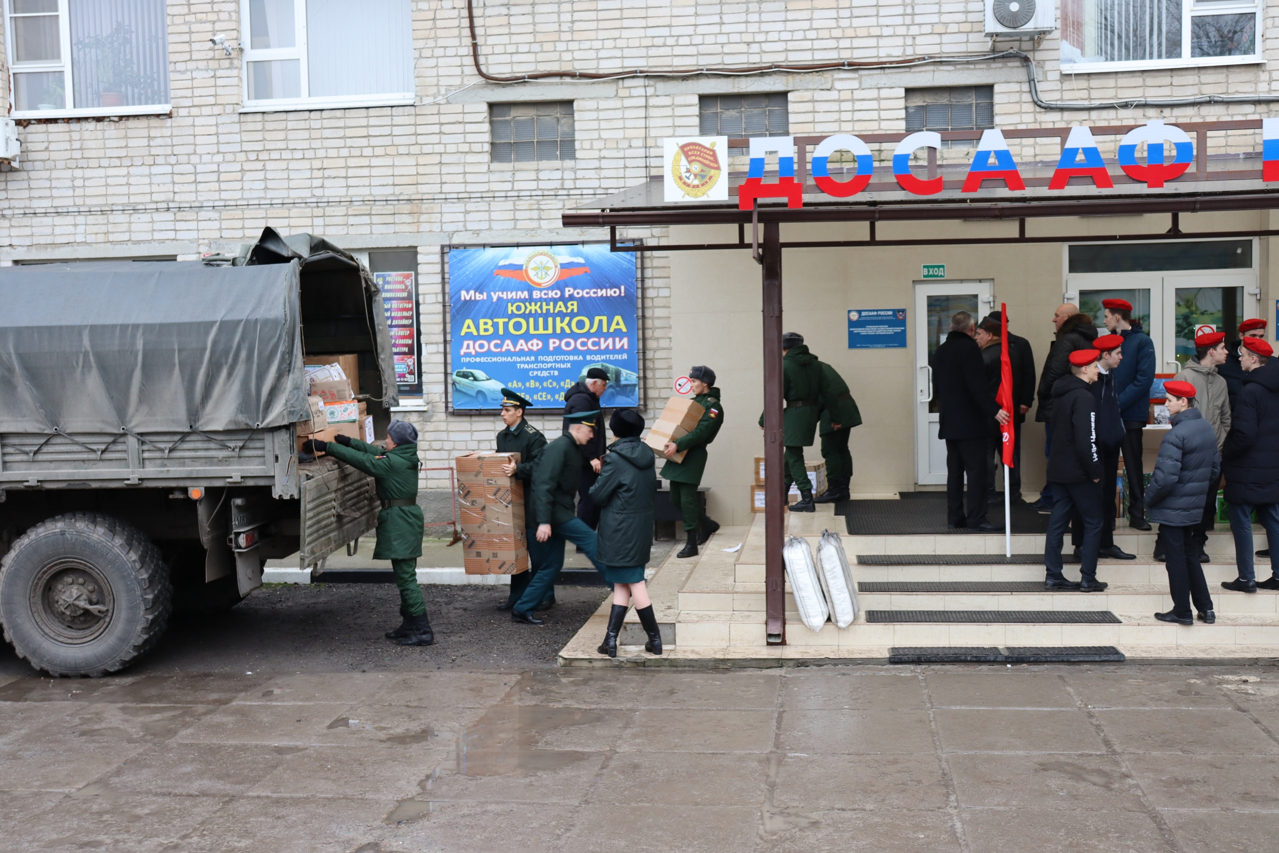 Центральный Совет ДОСААФ России выступил с инициативой о подготовке и передаче гуманитарной помощи к наступающему Новому 2024 году для военнослужащих, выполняющих боевые задачи в зоне проведения СВО. Региональное отделение ДОСААФ России Ростовской области поддержало эту инициативу о проведении акции и призвало все образовательные организации ДОСААФ России Ростовской области, Региональные отделения ДОСААФ России в Южном и Северо-Кавказском федеральных округах, во взаимодействии с местными органами власти, учебными учреждениями, общественными структурами и предприятиями принять в ней активное участие и оказать помощь воинам Южного военного округа. Передача собранных средств осуществлена через представителей легендарной 150 мотострелковой дивизии, чьи воины водрузили Знамя Победы в 1945 году над Рейхстагом, с дальнейшей доставкой их на фронт в воинские части к Новому году. В этих целях был организован сбор материальных средств и доставка в пункт сбора гуманитарной помощи в РО ДОСААФ России Ростовской области. В целях уменьшения транспортных расходов по доставке гуманитарной помощи и в связи с неблагоприятными погодными условиями предусмотрели вариант оказания помощи от всех желающих в виде перечисления денежных средств на специальный созданный для этих целях счет при Региональном отделении ДОСААФ России Ростовской области для дальнейшей централизованной закупки необходимых средств по предварительным заявкам командования воинских частей.
