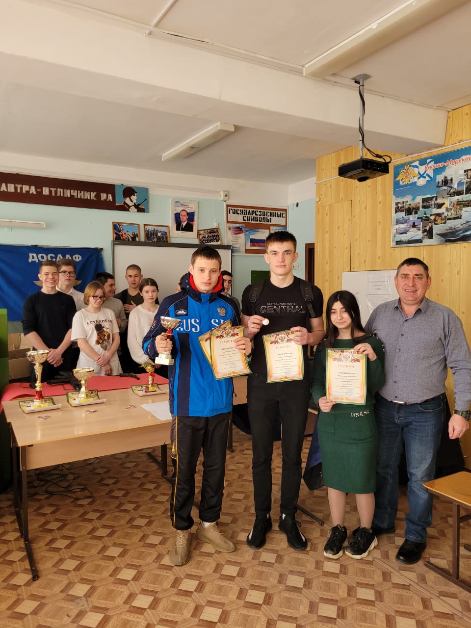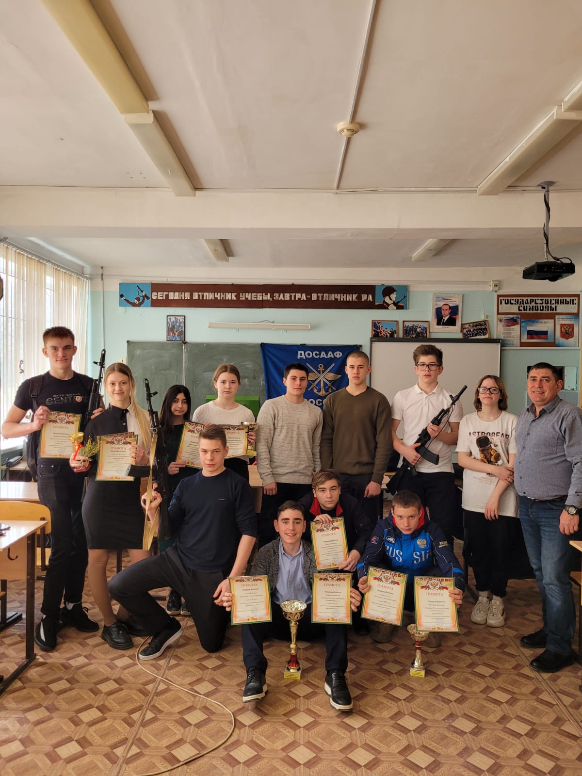 05.03.2022г. ПОУ Мартыновская АШ РО ДОСААФ России РО совместно с местным отделением МБОУ СОШ №1 слобода Большая Мартыновка при помощи члена ДОСААФ России учителя по ОБЖ МБОУ СОШ №1 Стадник Андрея Анатольевича провели соревнования « Меткий стрелок» и разборка и сборка АК – 47 среди учеников 8 и 9 классов. Команды формировались следующим образом. От каждого класса было по три участника. Участвовали в соревнованиях 7 команд. 8 А, 8Б, 8Г, 9А, 9Б, 9В, 9Г. Участники соревнований состязались в стрельбе из пистолета Макарова и автомата АК-47 на современном тренажере, а также на время разбирали и собирали автомат АК- 47. Борьба была упорная никто не собирался уступать друг другу. Судьи соревнований считали очки общекомандные и личные каждого участника по сумме трех этапов. Места распределились следующим образом. Первое место заняла команда 8А , второе место 9А класс, третье место 9Г класс. Из личных зачетов первое место заняла ученица 8А класса Корниенко Вера, второе место занял ученик 9А класса Баранчук Артем, третье место занял ученик 9Г класса Гулинский Иван. Команды были награждены от ПОУ Мартыновская АШ РО ДОСААФ России РО кубками, дипломами за первое, второе и третье место. Ребята которые проявили себя в личных результатах были награждены грамотами и значками ДОССАФ « Готов к защите Отечества».