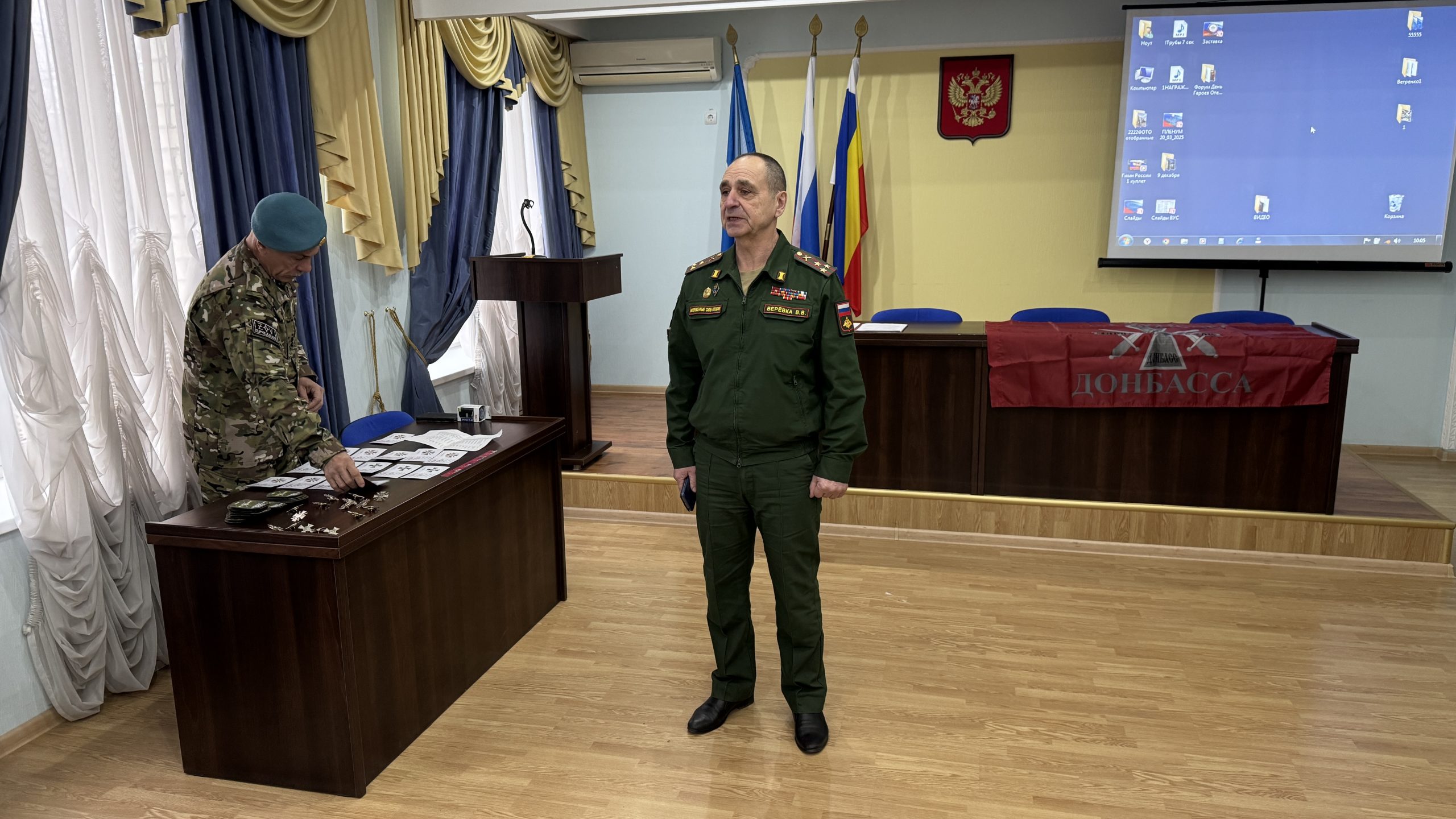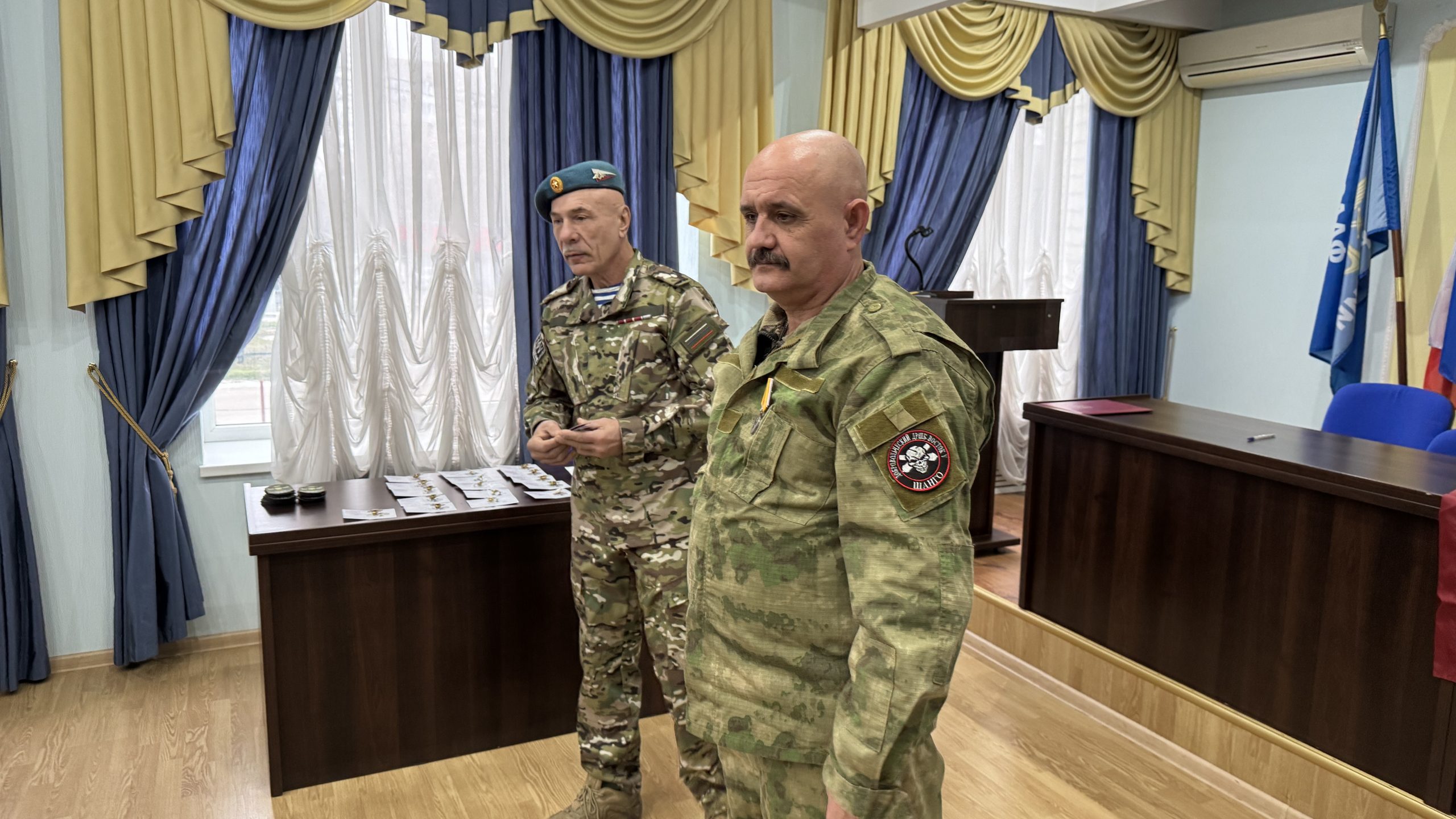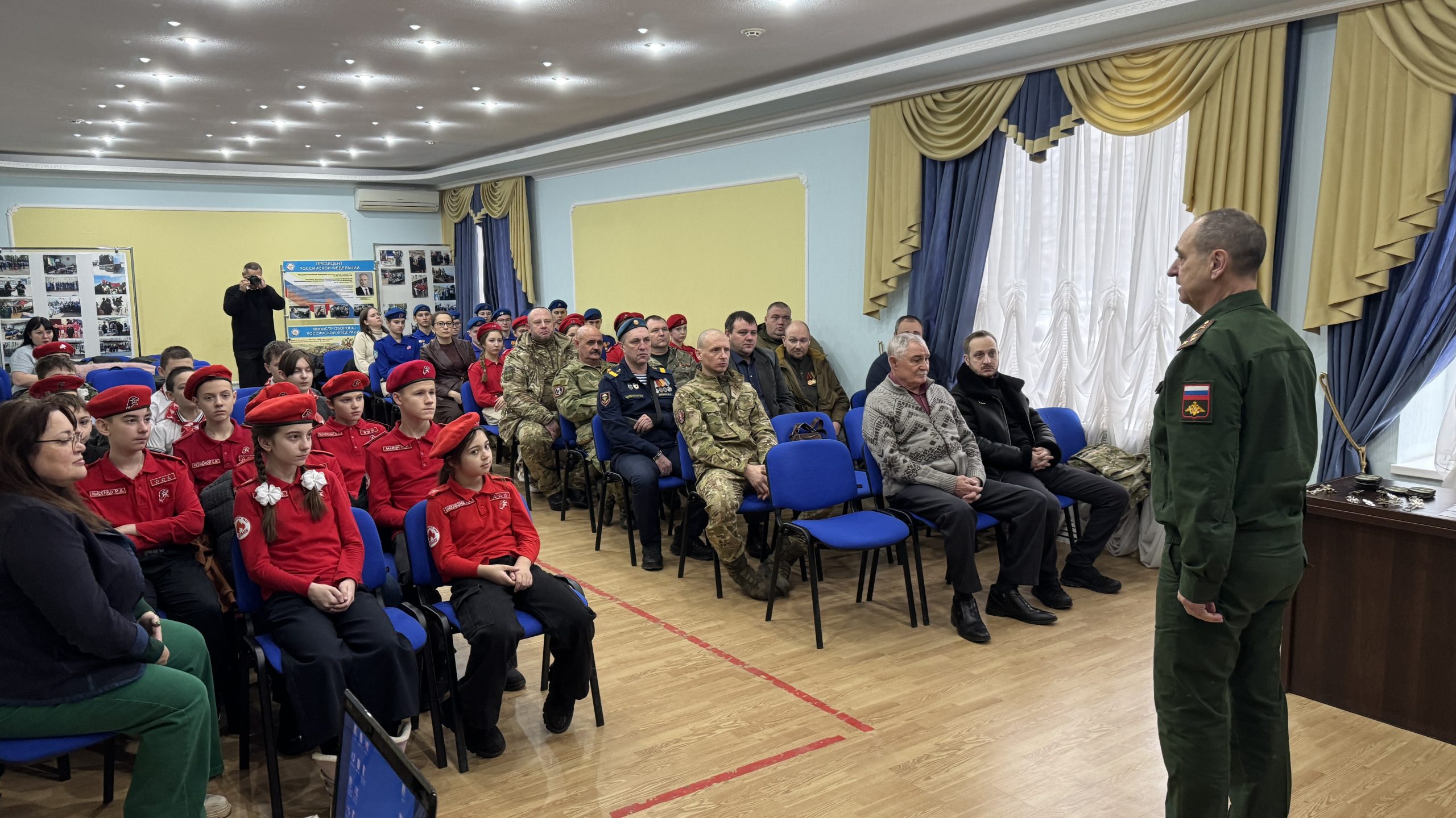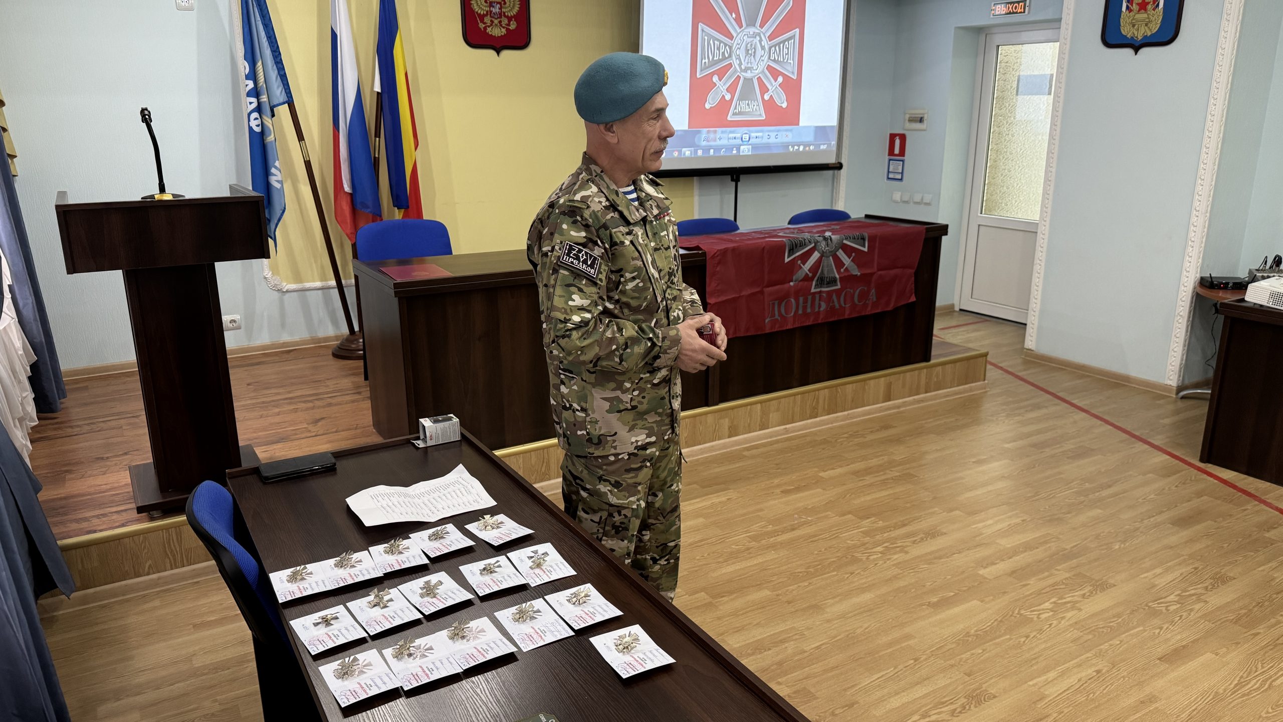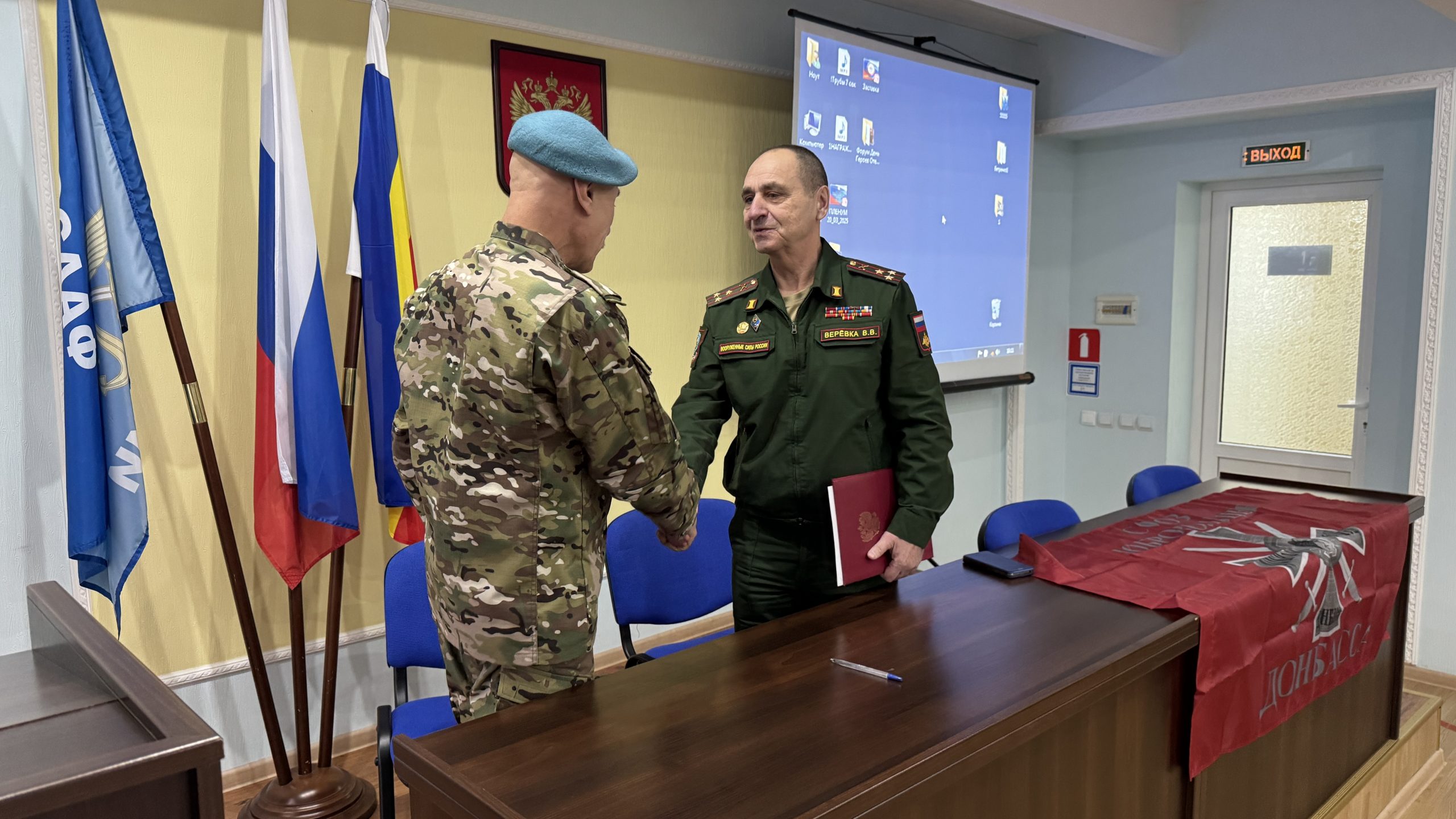 В пятницу, 26 декабря, состоялась встреча руководства и коллективов Регионального отделения ДОСААФ России Ростовской области и Регионального отделения МОО «Союз добровольцев Донбасса». С вступительным словом выступил Председатель РО ДОСААФ России Ростовской области полковник Верёвка Виктор Викторович, руководителем Ростовского отделения Союза добровольцев Донбасса, кавалером трёх орденов Мужества полковником Субботиным Александром Владимировичем были вручены знаки отличия и удостоверения новым членам Союза. На мероприятие были приглашены юнармейцы школ Советского района Ростова-на-Дону, которые пообщались с ветеранами СВО, получили информацию о ходе ведения боевых действий, поздравили их с вступлением в ряды Союза добровольцев Донбасса.