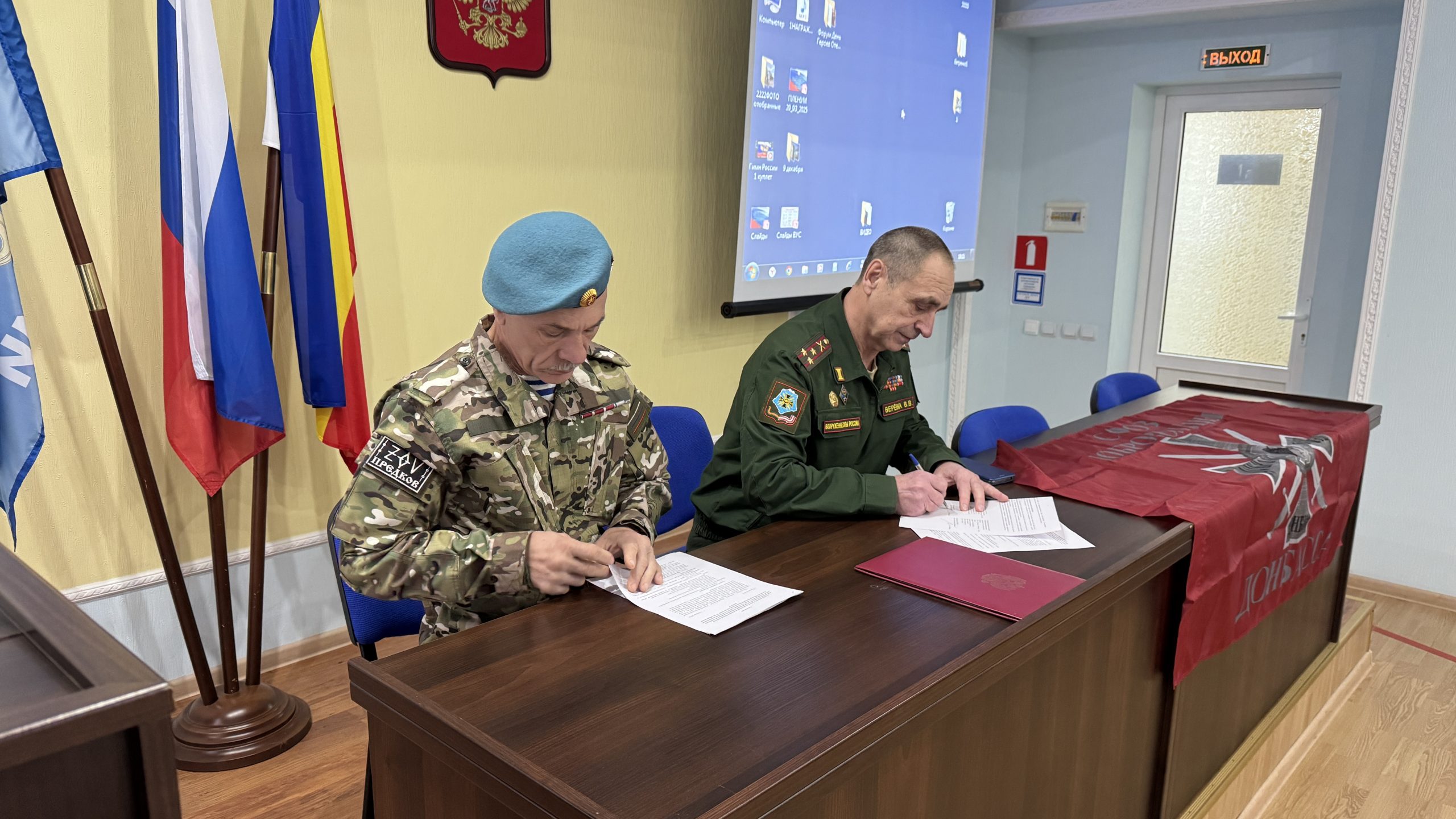 Руководители подписали Соглашение о сотрудничестве и взаимодействии между ДОСААФ Ростовской области и Союзом добровольцев Донбасса Ростовской области, договорились о совместных действиях в ходе патриотического воспитания подрастающего поколения, участии в различных совместных военно-патриотических мероприятиях.