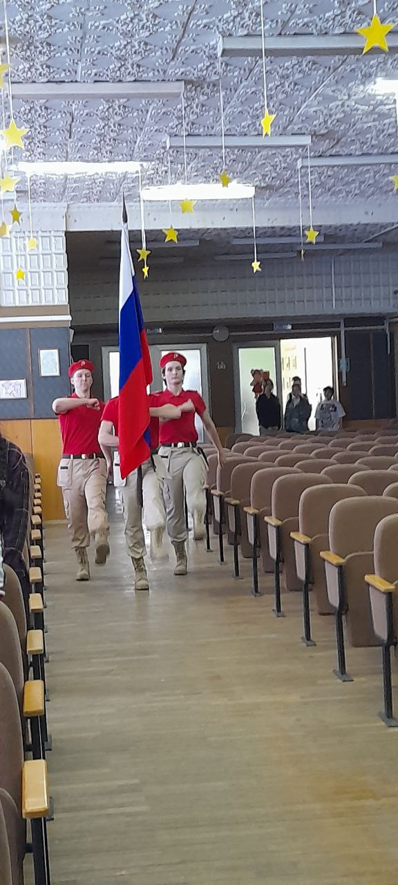 Спартакиада началась с торжественного мероприятия в актовом зале школы. В присутствии участников и гостей было занесено знамя России.