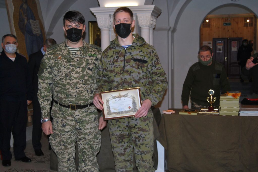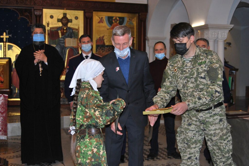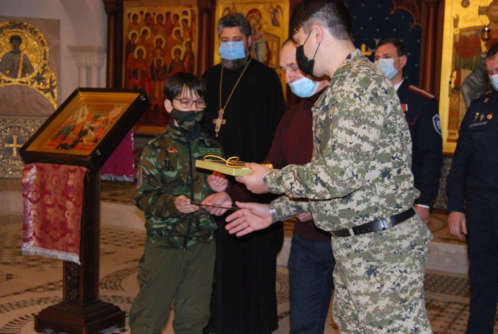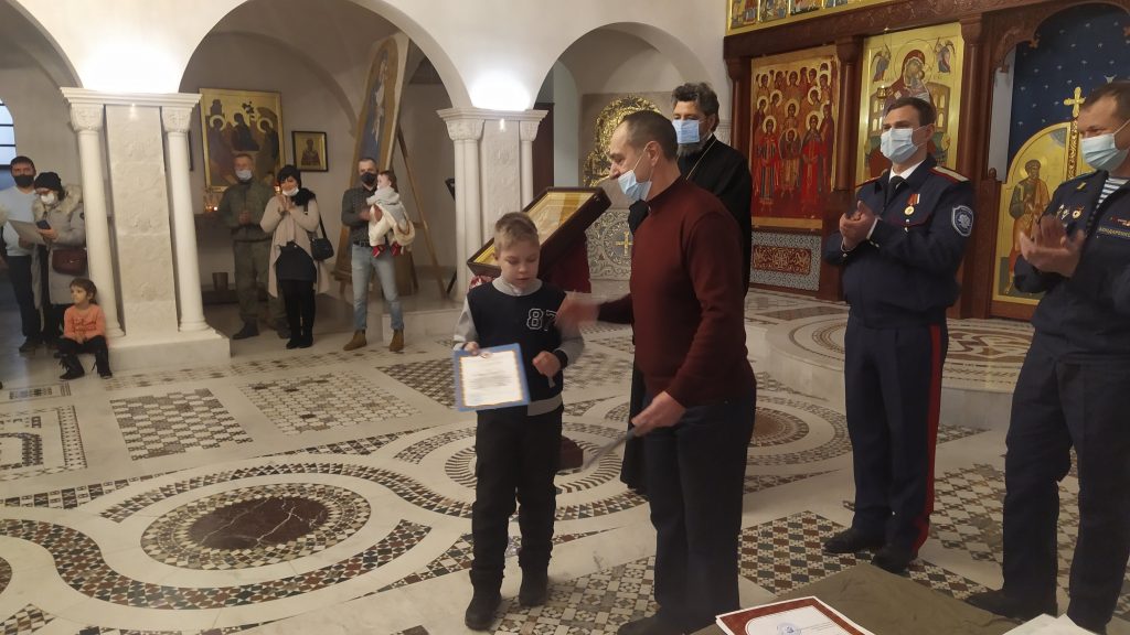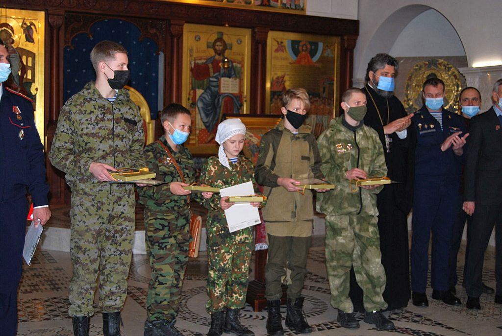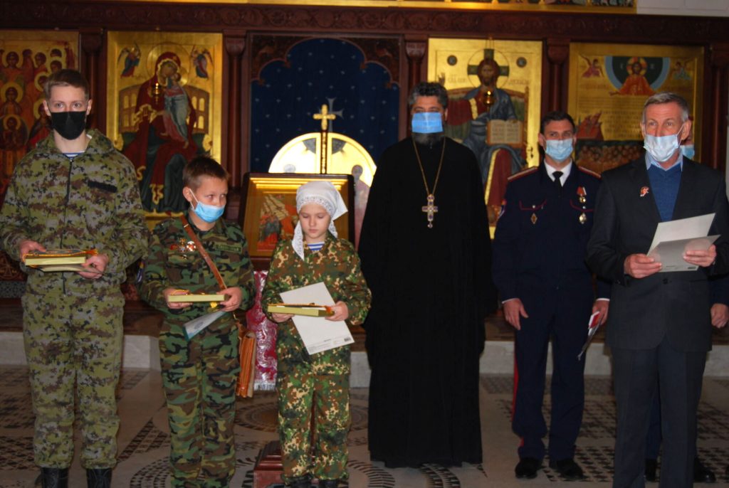 27 декабря 2020 года учащиеся приходской воскресной школы, занимающиеся по программе «Уроки мужества», и их родители приняли участие, члены Первичного и Регионального отделения ДОСААФ России Ростовской области в торжественном построении, посвященном подведению итогов окончания календарного учебного года по программе «Начальная военная подготовка к службе в Российской армии».