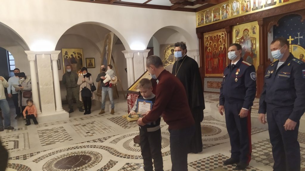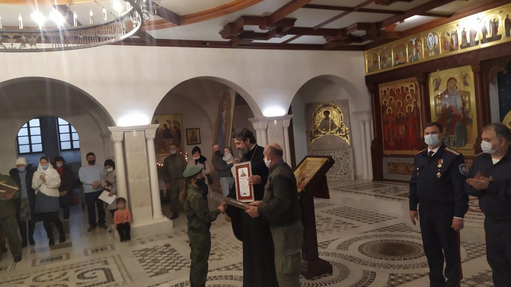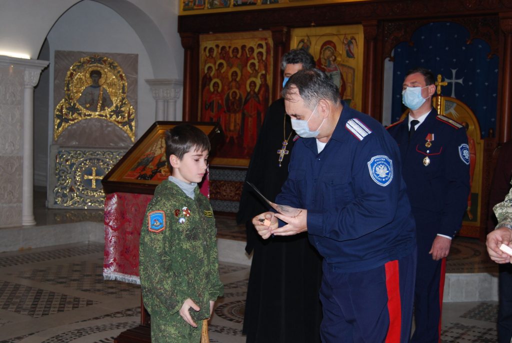 Настоятель прихода духовник казачьей-юнармейской развед-группы «Георгиевцы» протоиерей Валерий Волощук и инструкторы Руденко Сергей Викторович, Погодин Владимир Владимирович, Сомов Денис Викторович, воспитанники Васильев Владимир и Шепелев Саша были награждены юбилейными медалями, посвященными 75-летию победы в Великой Отечественной войне, от имени генерального инспектора Министерства обороны Российской Федерации генерала армии Ермакова за активную военно-патриотическую работу. Некоторым юнармейцам были присвоены очередные казачие чины. Гостями нашего прихода в этот день были казаки военно-исторического клуба «Казачья слава» из города Азова.