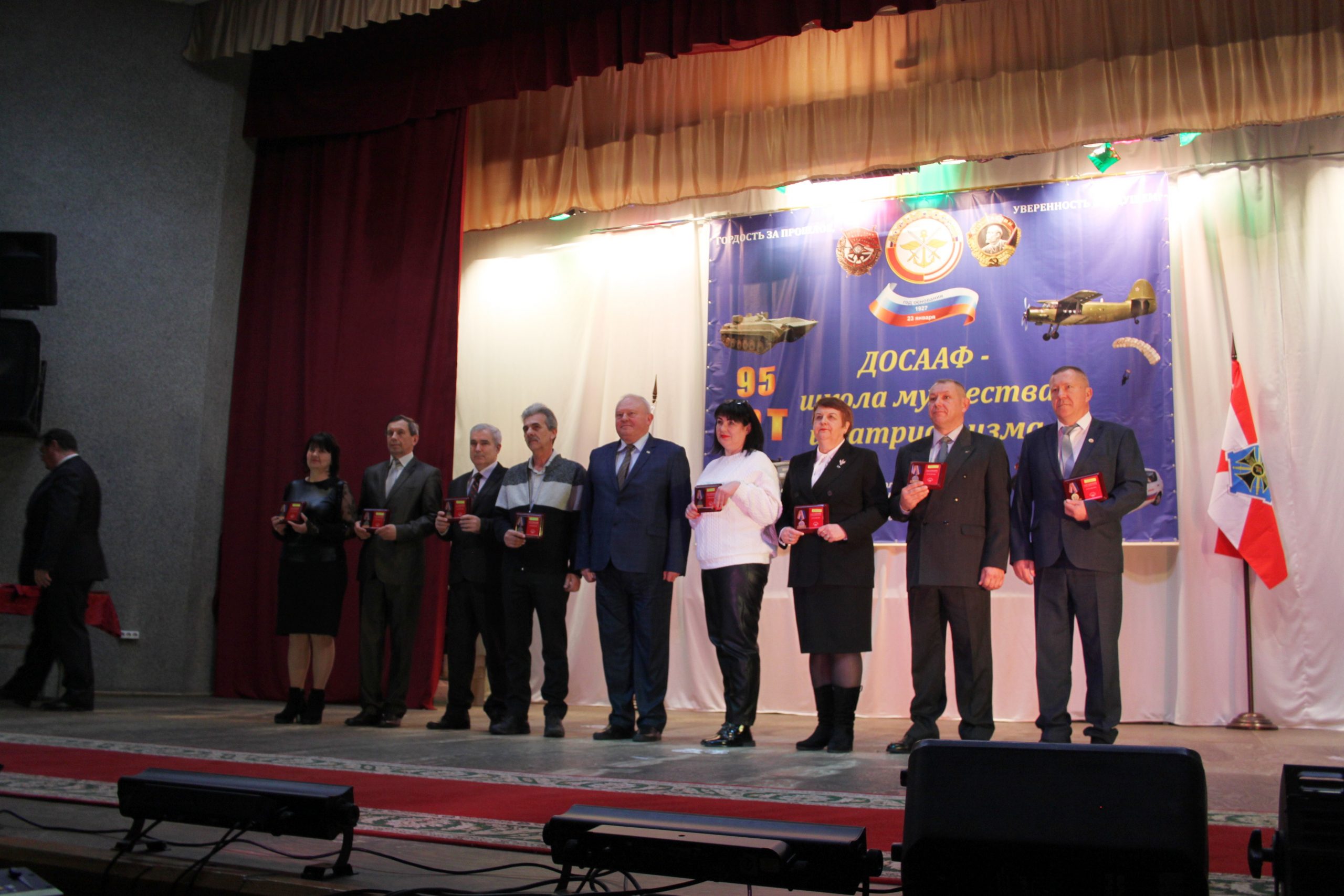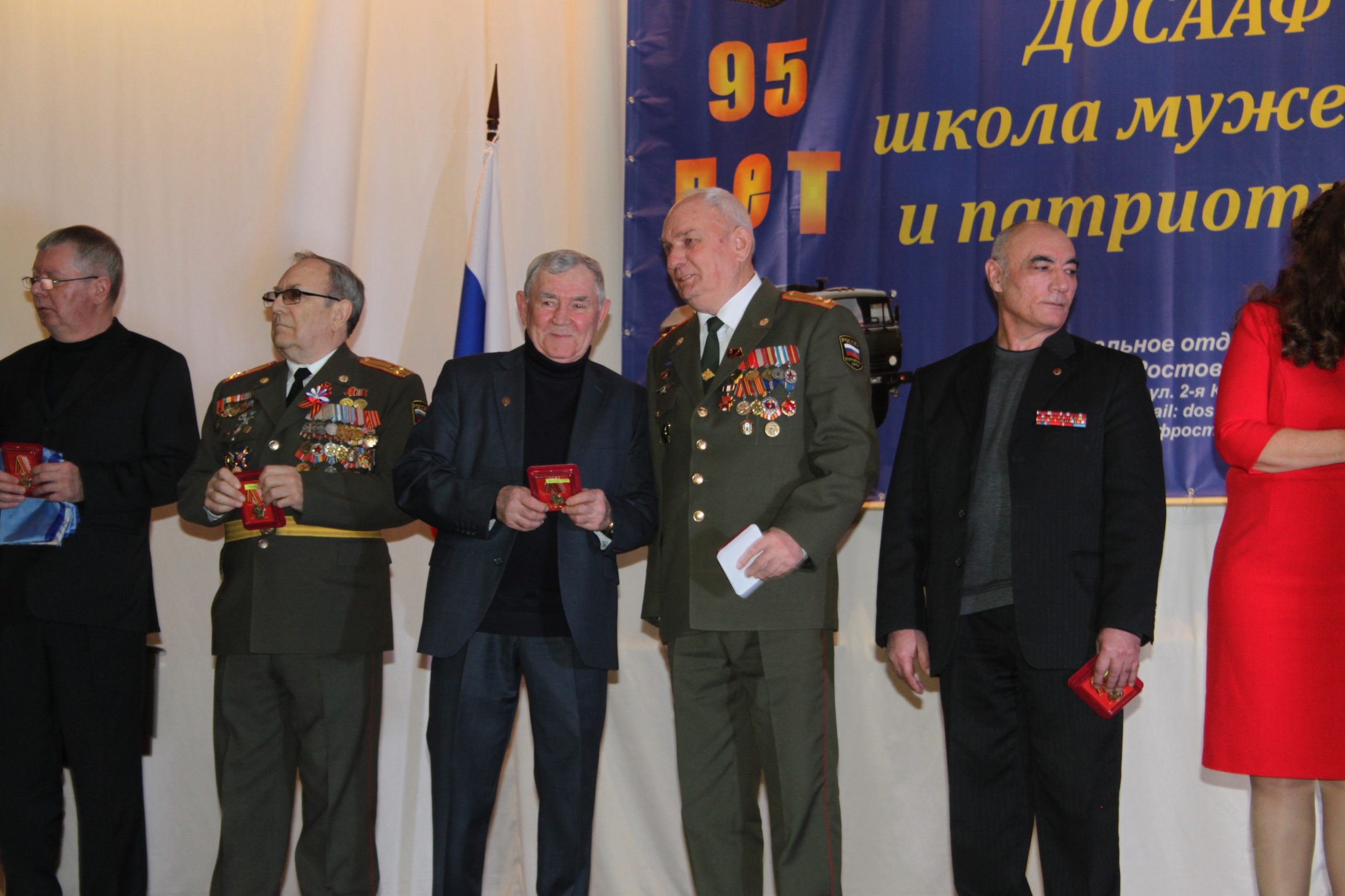 Далее был зачитан приказ Председателя ДОСААФ России о поощрении и проведено награждение юбилейной медалью «95 лет ДОСААФ» членов ДОСААФ и представителей органов власти Ростовской области, министерств и ведомств.