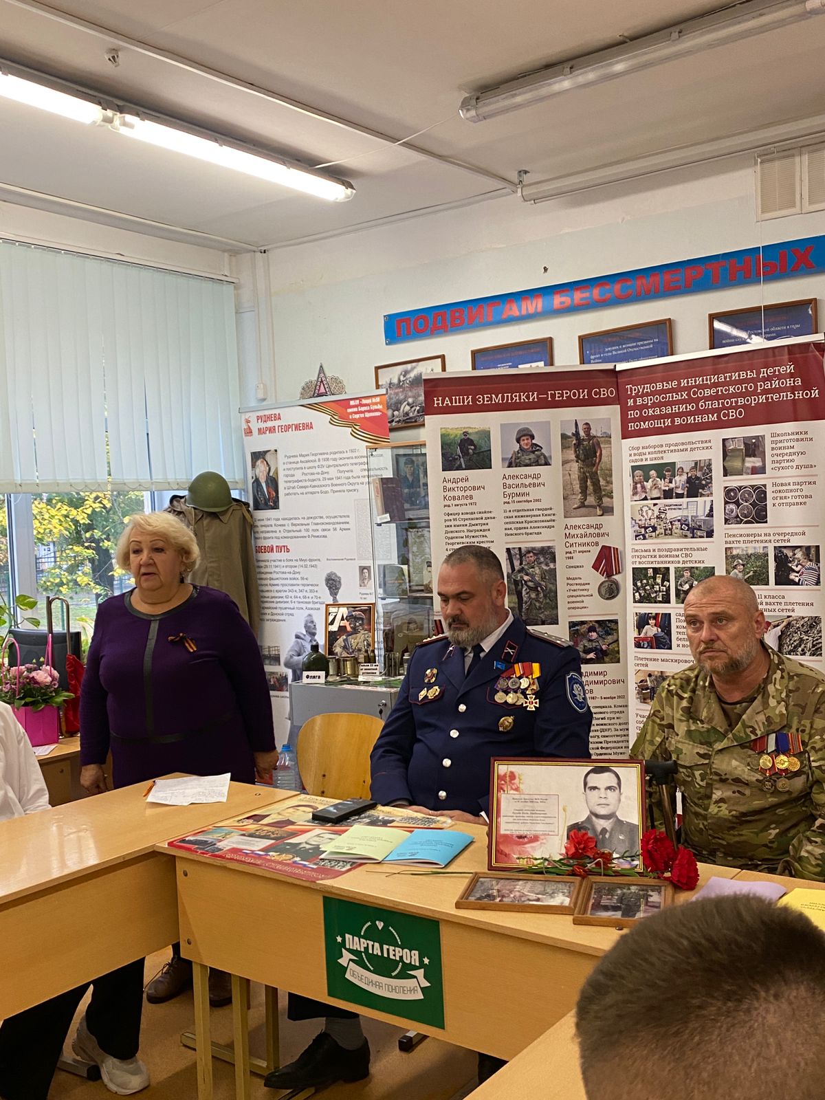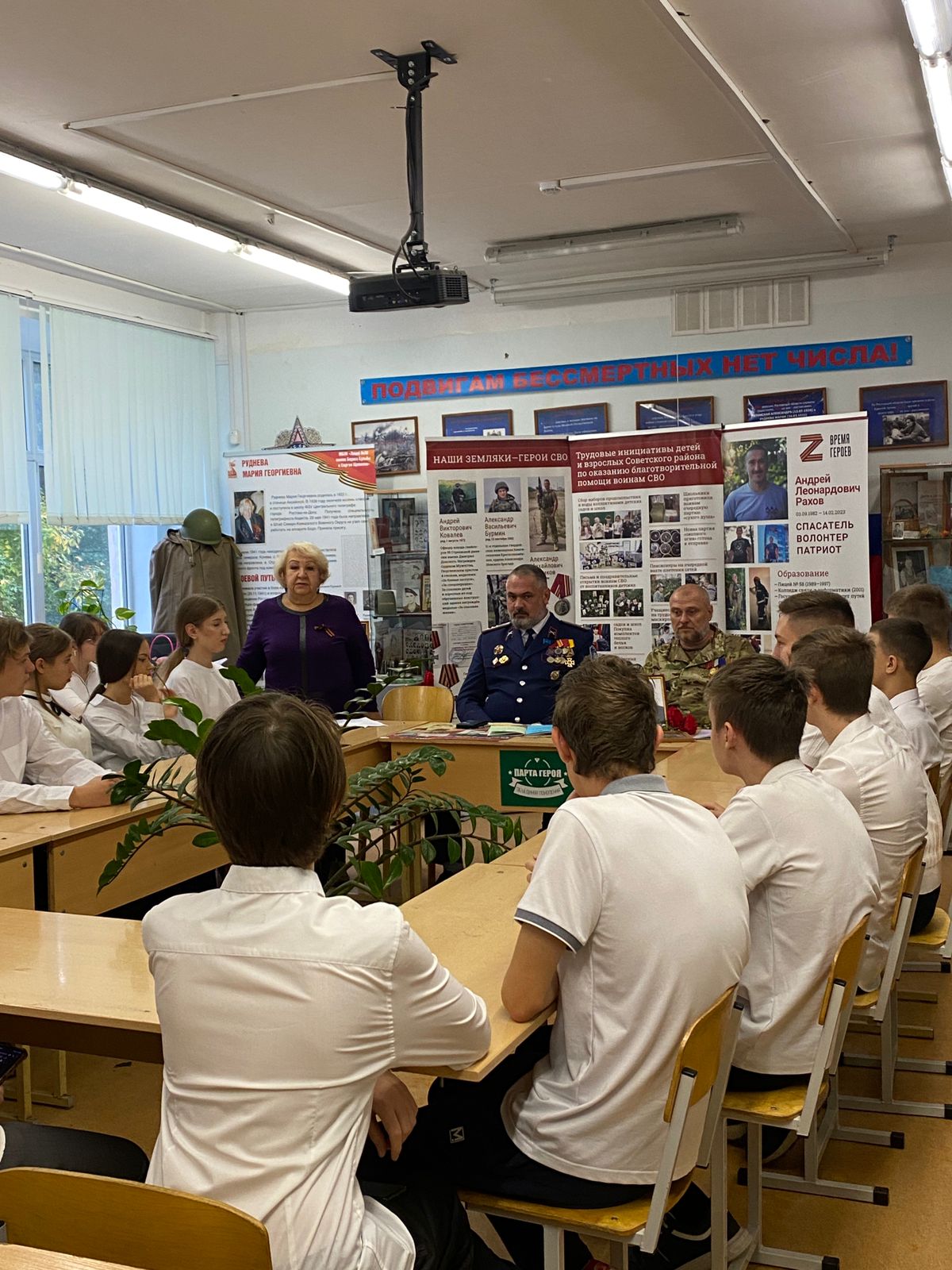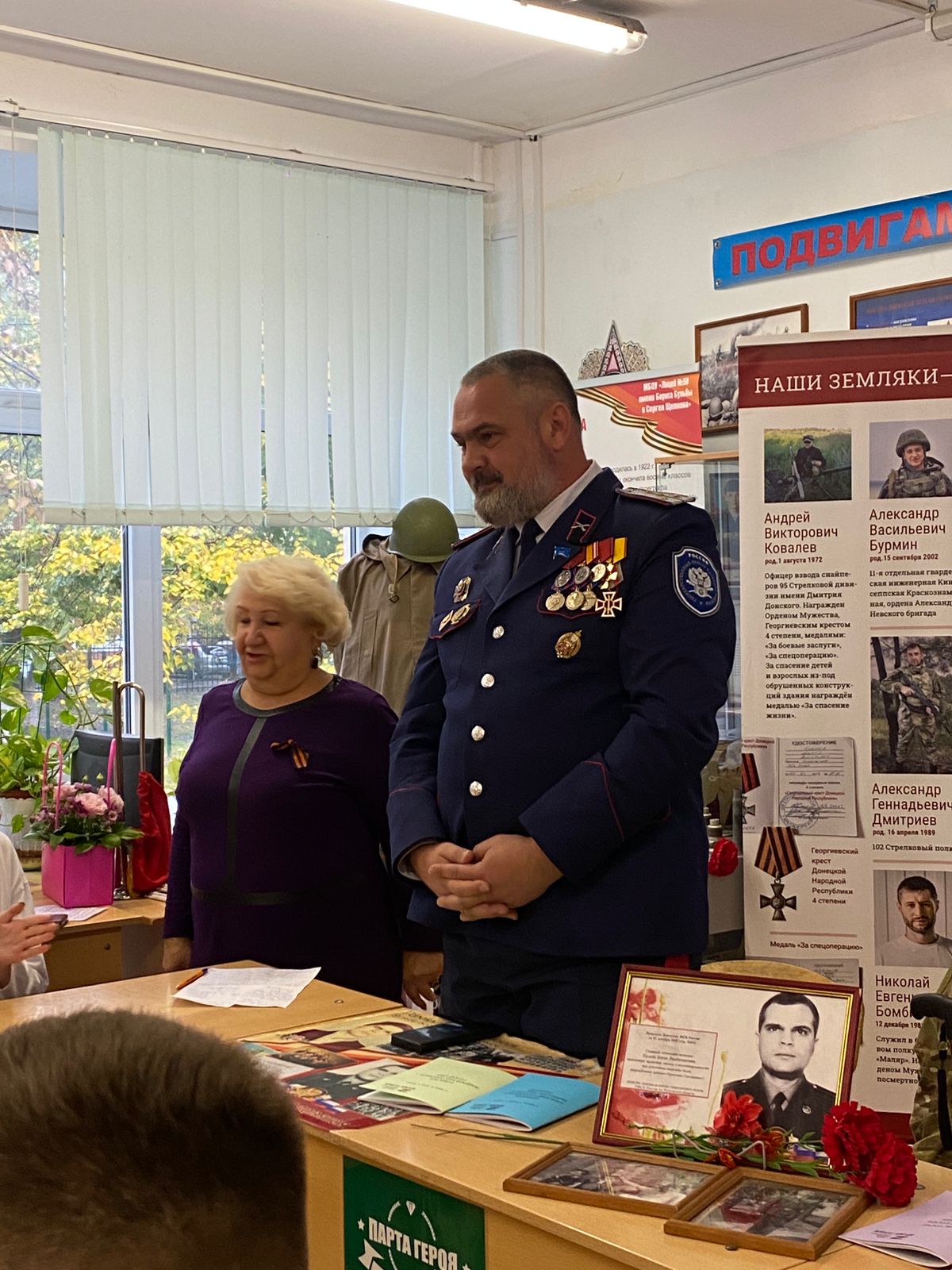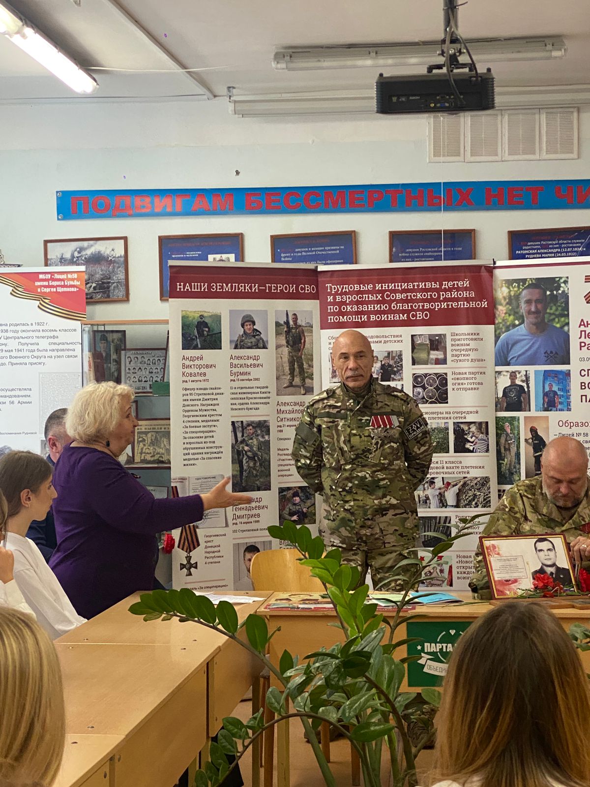 9 октября 2025 года, под эгидой ДОСААФ России Ростовской области, руководитель регионального отделения МОО Союз Добровольцев Донбасса Александр Субботин «Саныч», совместно с ветеранами СВО Валерием Кашинковым, снайпером 150 гвардейской мотострелковой дивизии и Дмитрием Пешковым, заместителем командира добровольческой казачьей бригады «Дон», провели урок мужества с школьниками Лицея N58 имени Бориса Бульбы и Сергея Щеткова города Ростова-на-Дону.