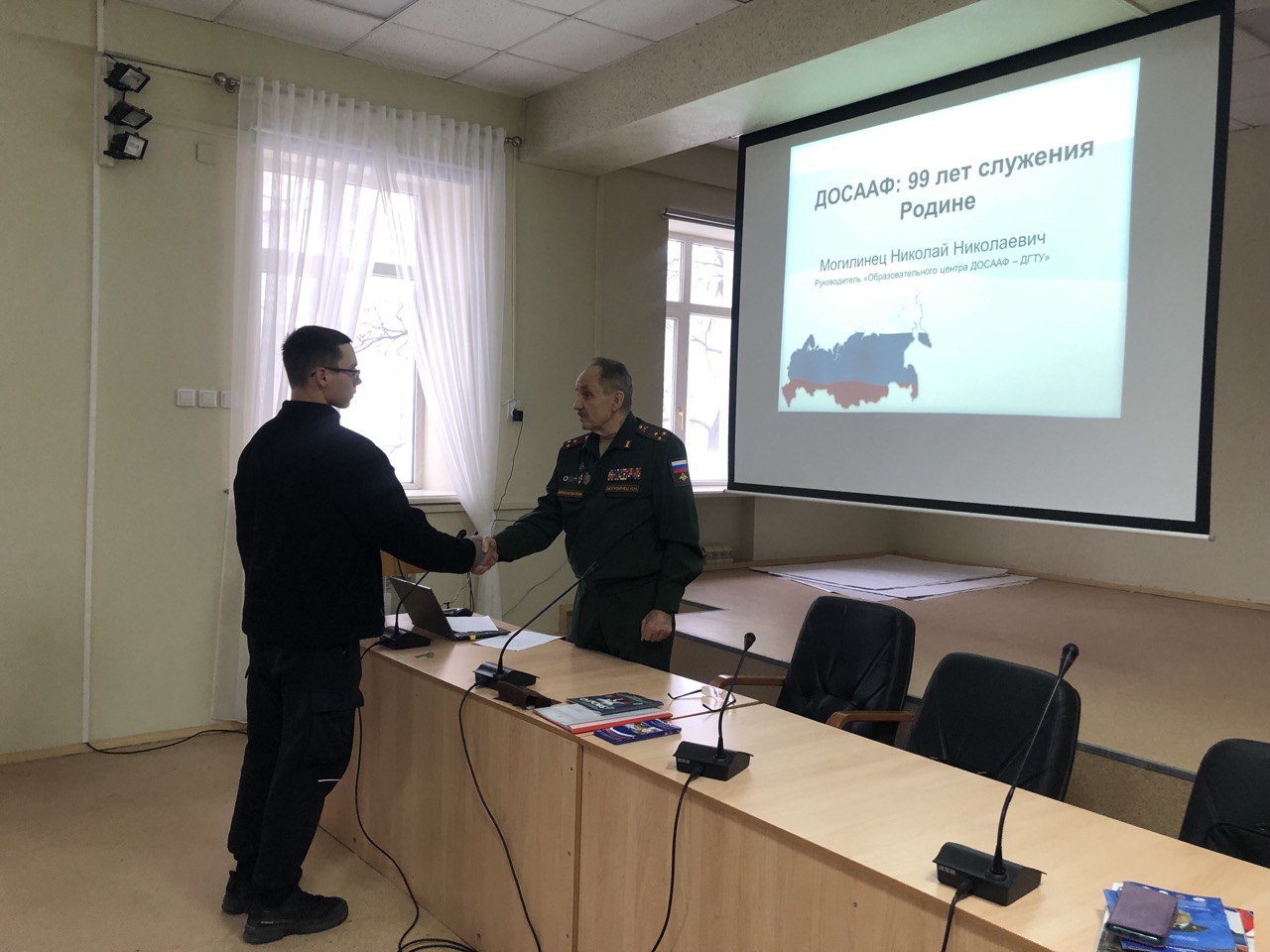 Руководитель Образовательного центра ДОСААФ-ДГТУ Могилинец Николай Николаевич 22 января в училище олимпийского резерва провёл Урок мужества, приуроченный к 99‑летию ДОСААФ России. Мероприятие собрало 109 студентов — будущих спортсменов, которые получили возможность прикоснуться к героическому наследию нашей страны.