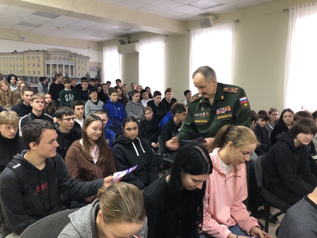 Студентам вручили книгу о героях России Ростовской области — издание, где собраны биографии земляков, проявивших мужество в боевых действиях и мирной жизни, буклеты ДОСААФ с информацией о деятельности организации и материалы об областных турнирах «Герои России», посвящённых памяти защитников Родины.