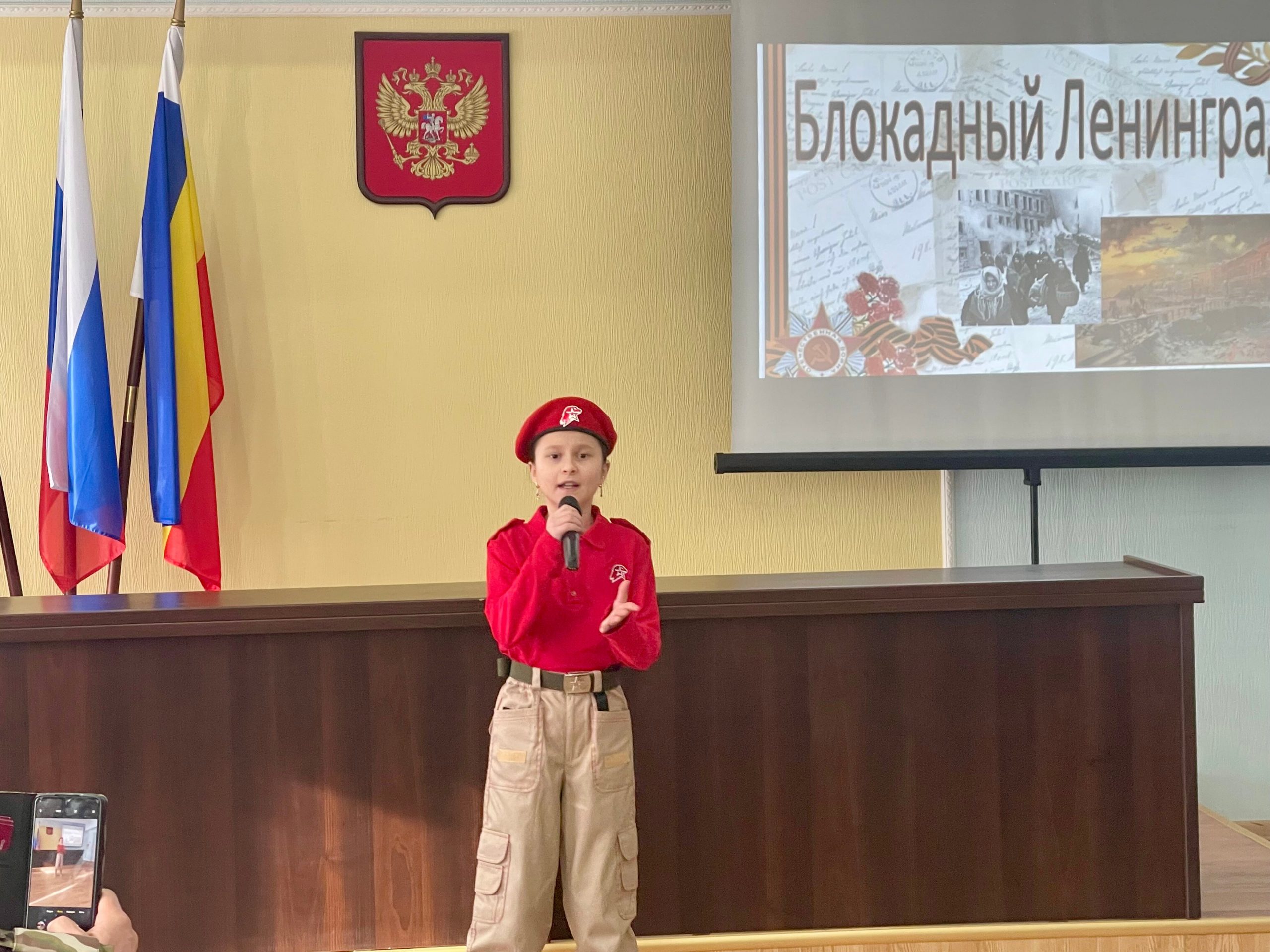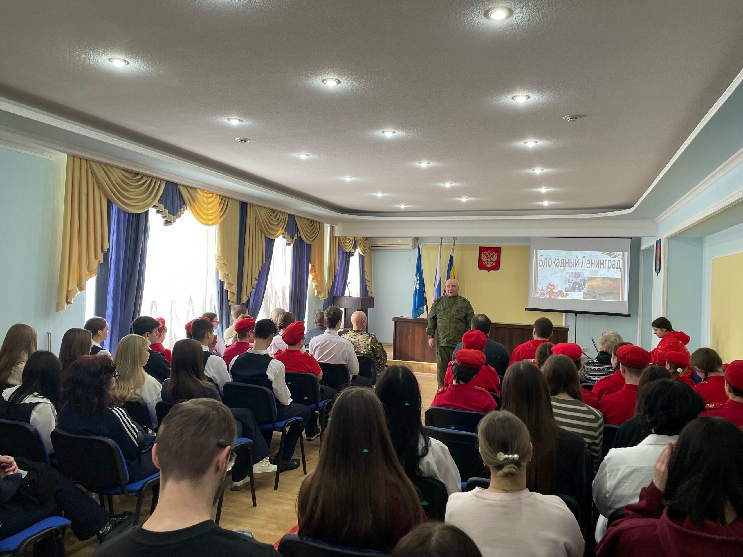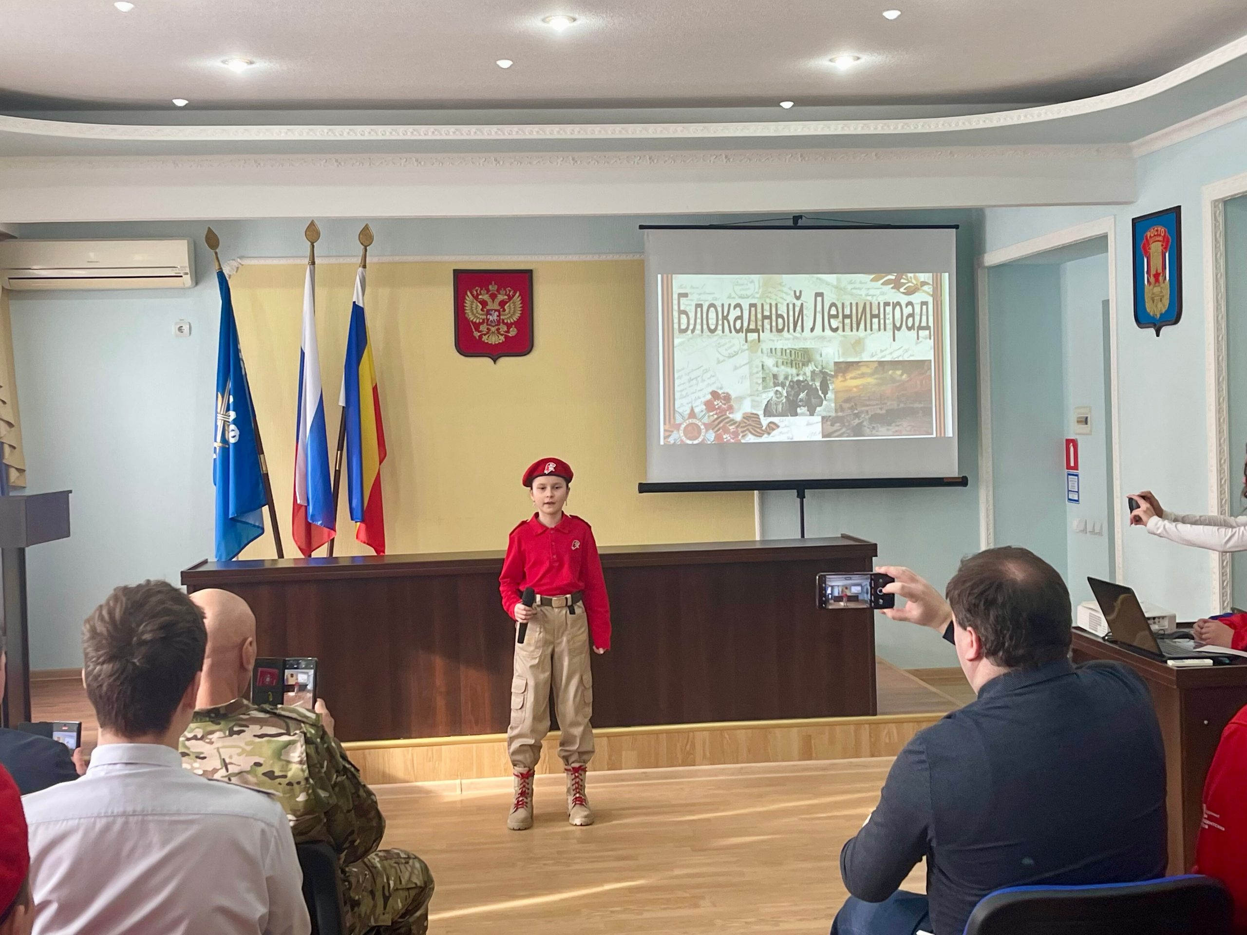 В зале присутствовали представители органов законодательной власти, члены ветеранских и общественных организаций и учащиеся общеобразовательных учреждений Ростова-на-Дону.