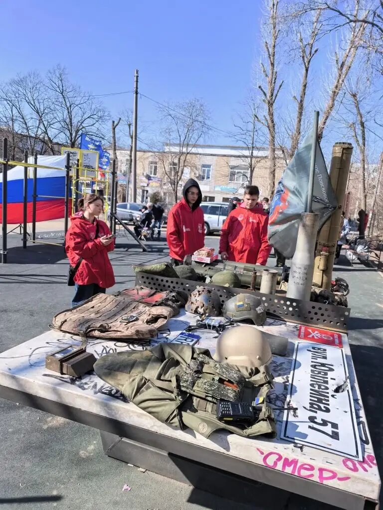 Участник поискового объединения «Миус-фронт» Ростислав Лысенко представил экспозицию предметов современной специальной военной операции, сопровождая её подробным рассказом о предназначении и правилах обращения с оружием.